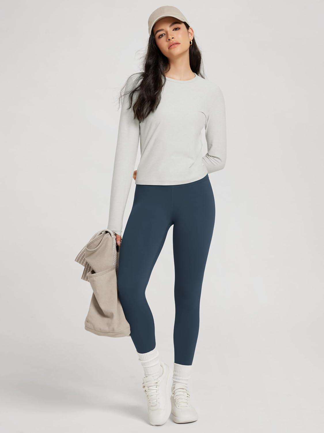 ODODOS Women’s Long Sleeve Performance T-Shirts – Ultra Soft Stratum Tech Crew Neck Tee UPF 50+ Essential Crop Top(Salt Heather)