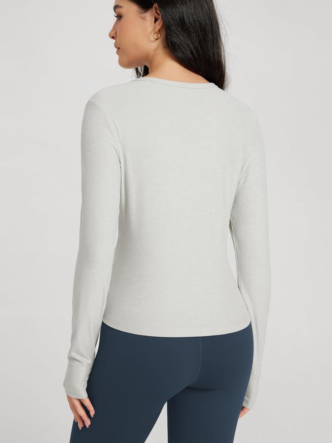 ODODOS Women's Long Sleeve Performance T-Shirts - Ultra Soft Stratum Tech Crew Neck Tee UPF 50+ Essential Crop Top(Salt Heather)