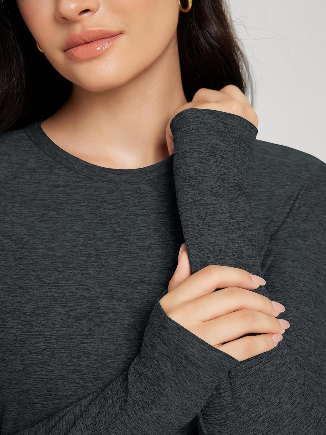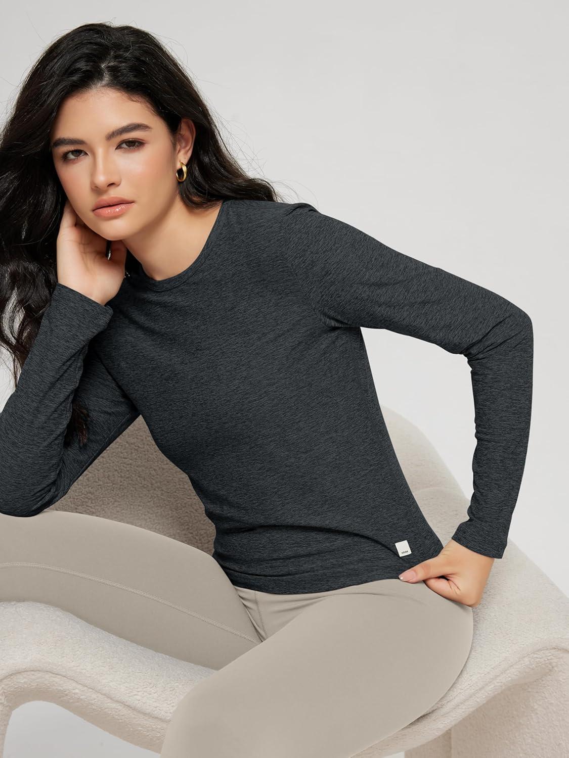 ODODOS Women's Long Sleeve Performance T-Shirts - Ultra Soft Stratum Tech Crew Neck Tee UPF 50+ Essential Top(Charcoal Heather)