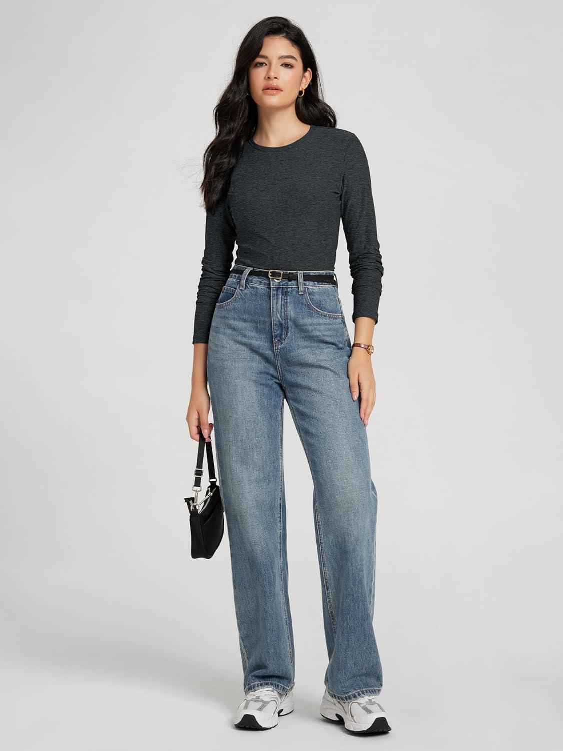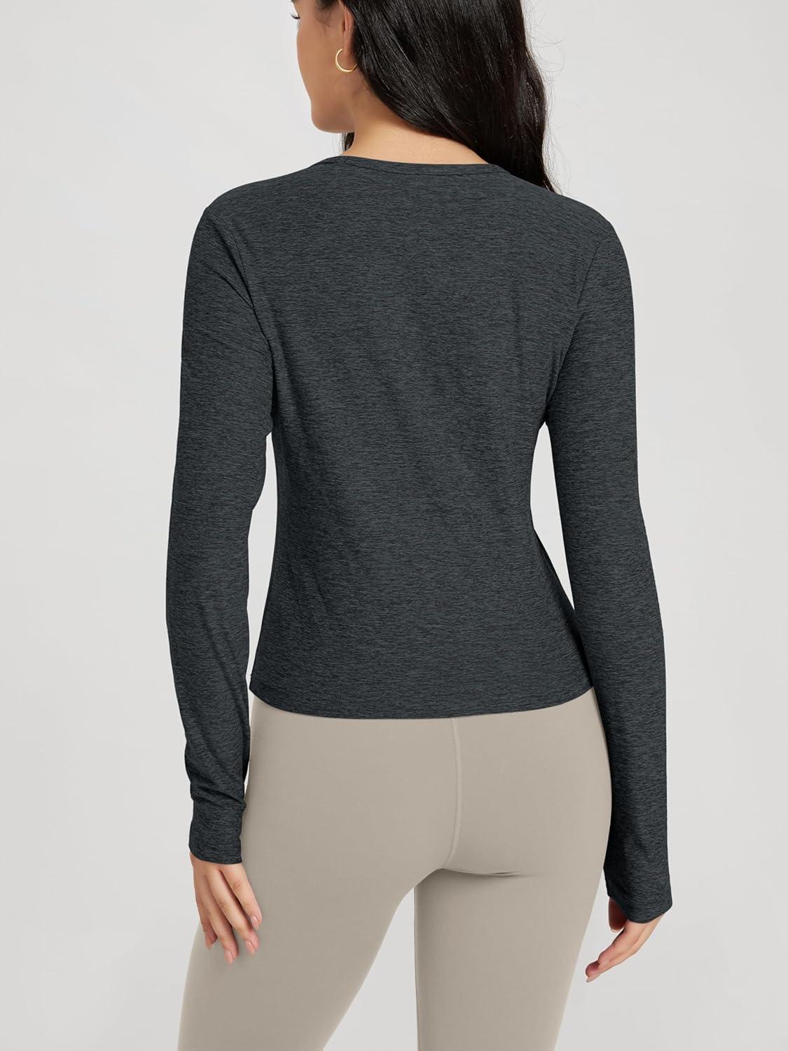 ODODOS Women’s Long Sleeve Performance T-Shirts – Ultra Soft Stratum Tech Crew Neck Tee UPF 50+ Essential Top(Charcoal Heather)