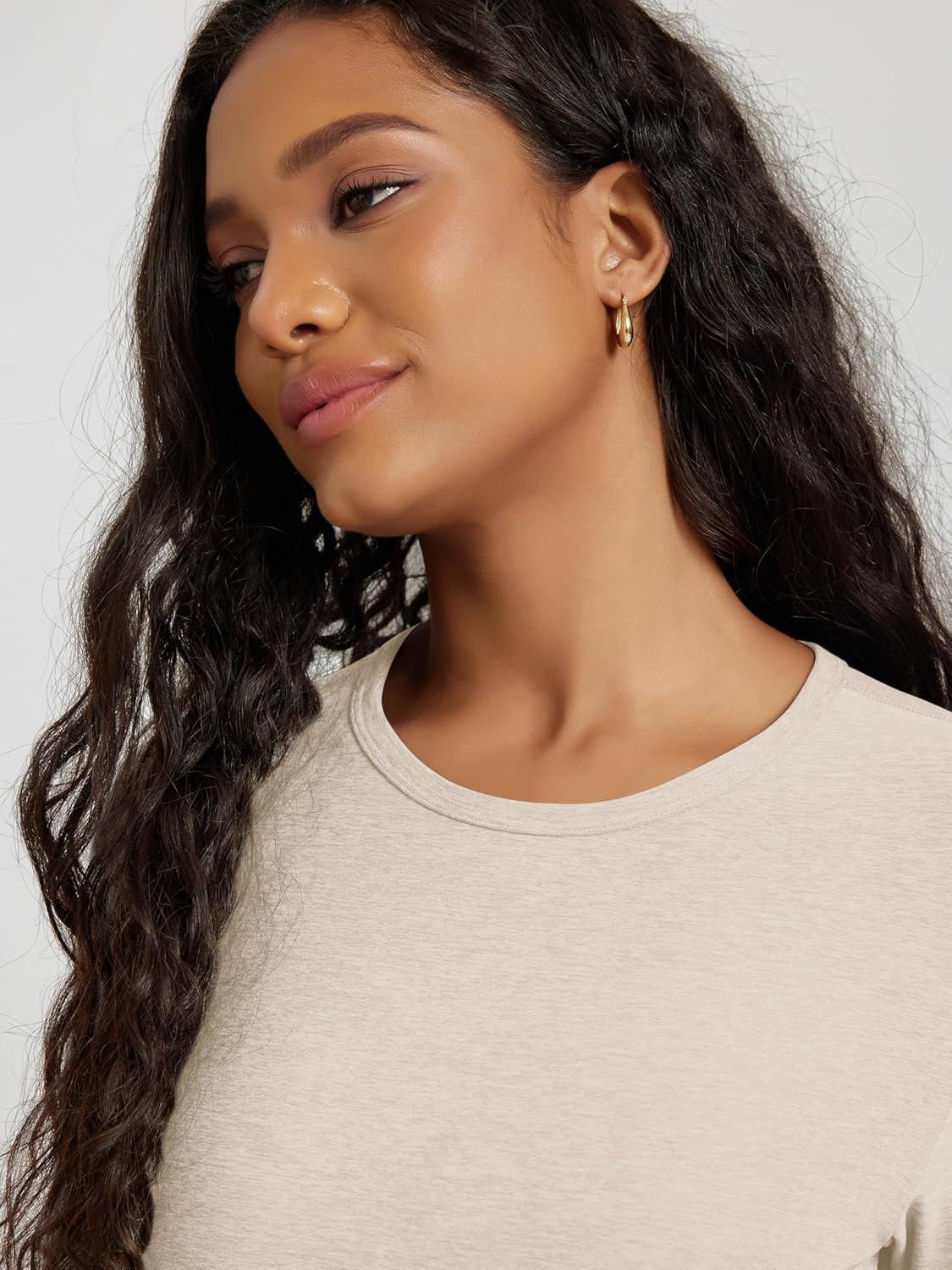 ODODOS Women’s Long Sleeve Performance T-Shirts – Ultra Soft Stratum Tech Crew Neck Tee UPF 50+ Essential Top(Ecru Heather)