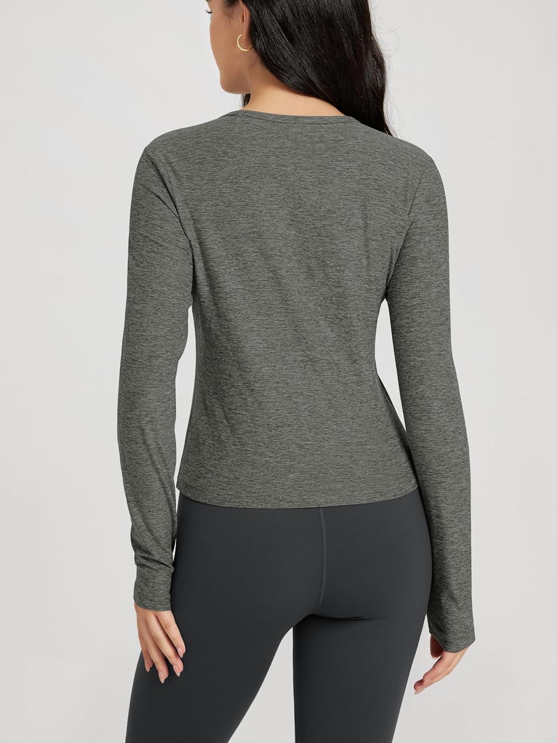 ODODOS Women’s Long Sleeve Performance T-Shirts – Ultra Soft Stratum Tech Crew Neck Tee UPF 50+ Essential Top(Smoke Heather)