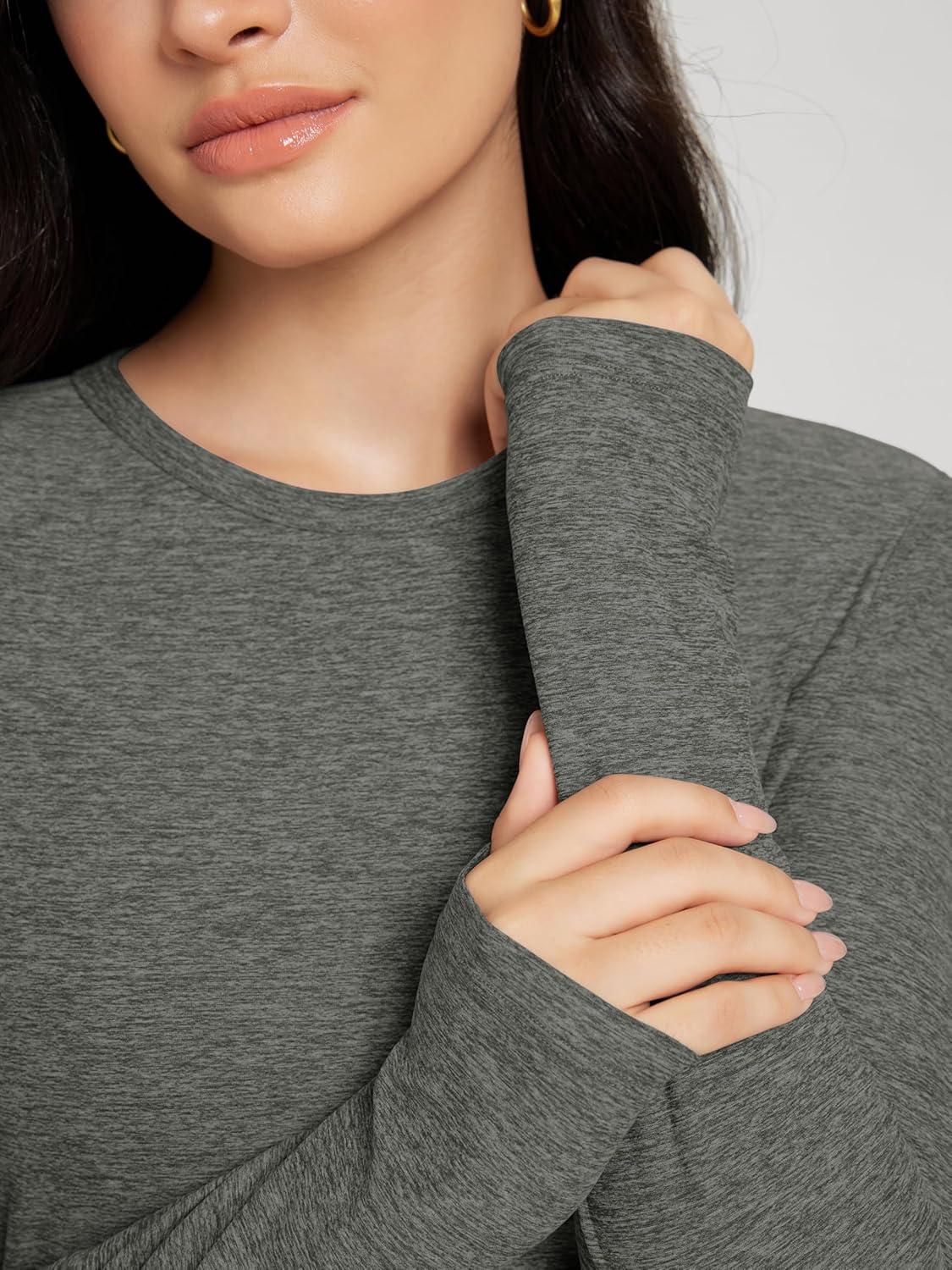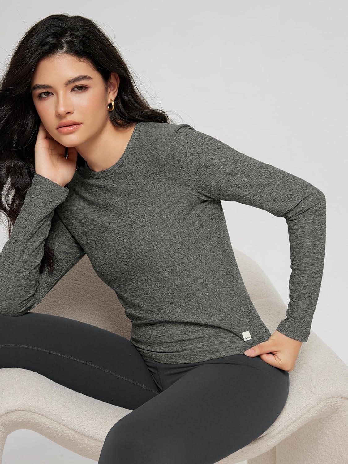 ODODOS Women's Long Sleeve Performance T-Shirts - Ultra Soft Stratum Tech Crew Neck Tee UPF 50+ Essential Top(Smoke Heather)