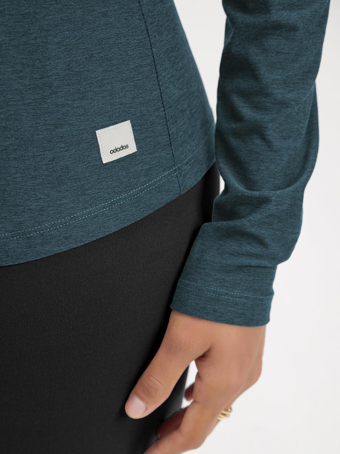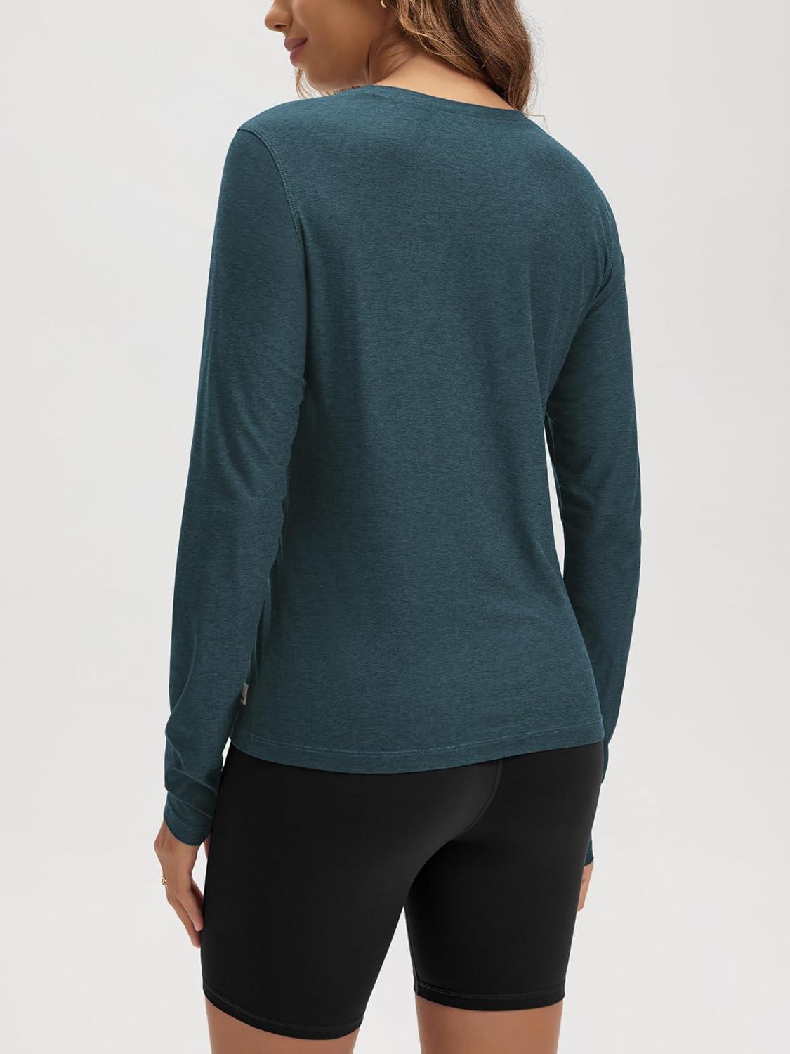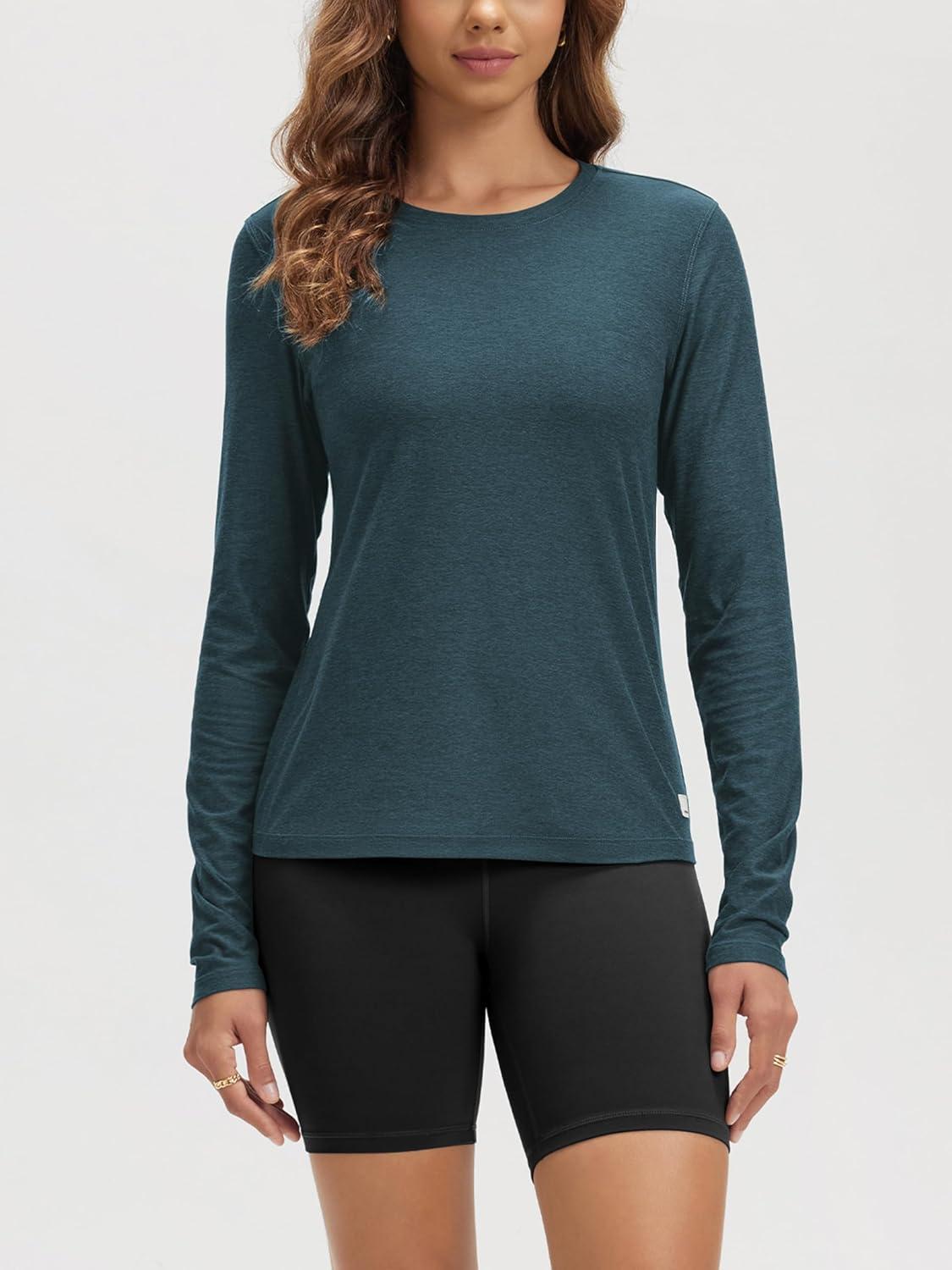 ODODOS Women's Long Sleeve T-Shirt - Ultra Soft Stratum Tech Performance Top UPF 50+ Breathable Crew Neck Pullover(Navy Heather)