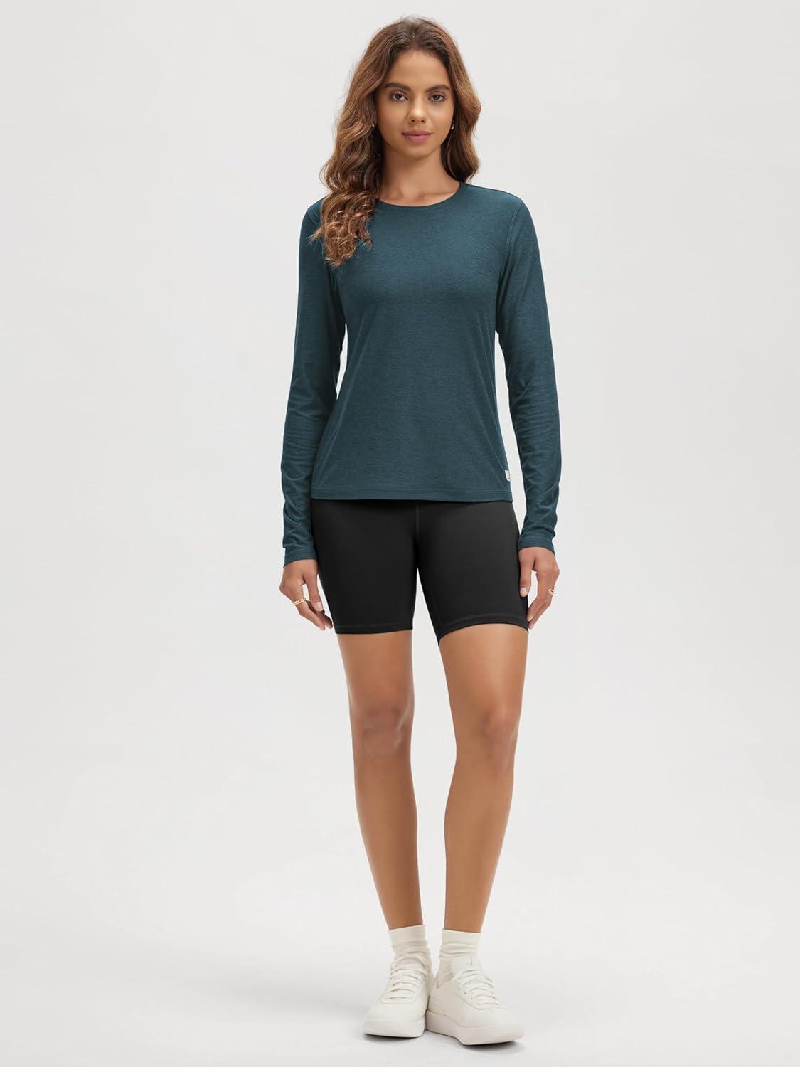 ODODOS Women’s Long Sleeve T-Shirt – Ultra Soft Stratum Tech Performance Top UPF 50+ Breathable Crew Neck Pullover(Navy Heather)