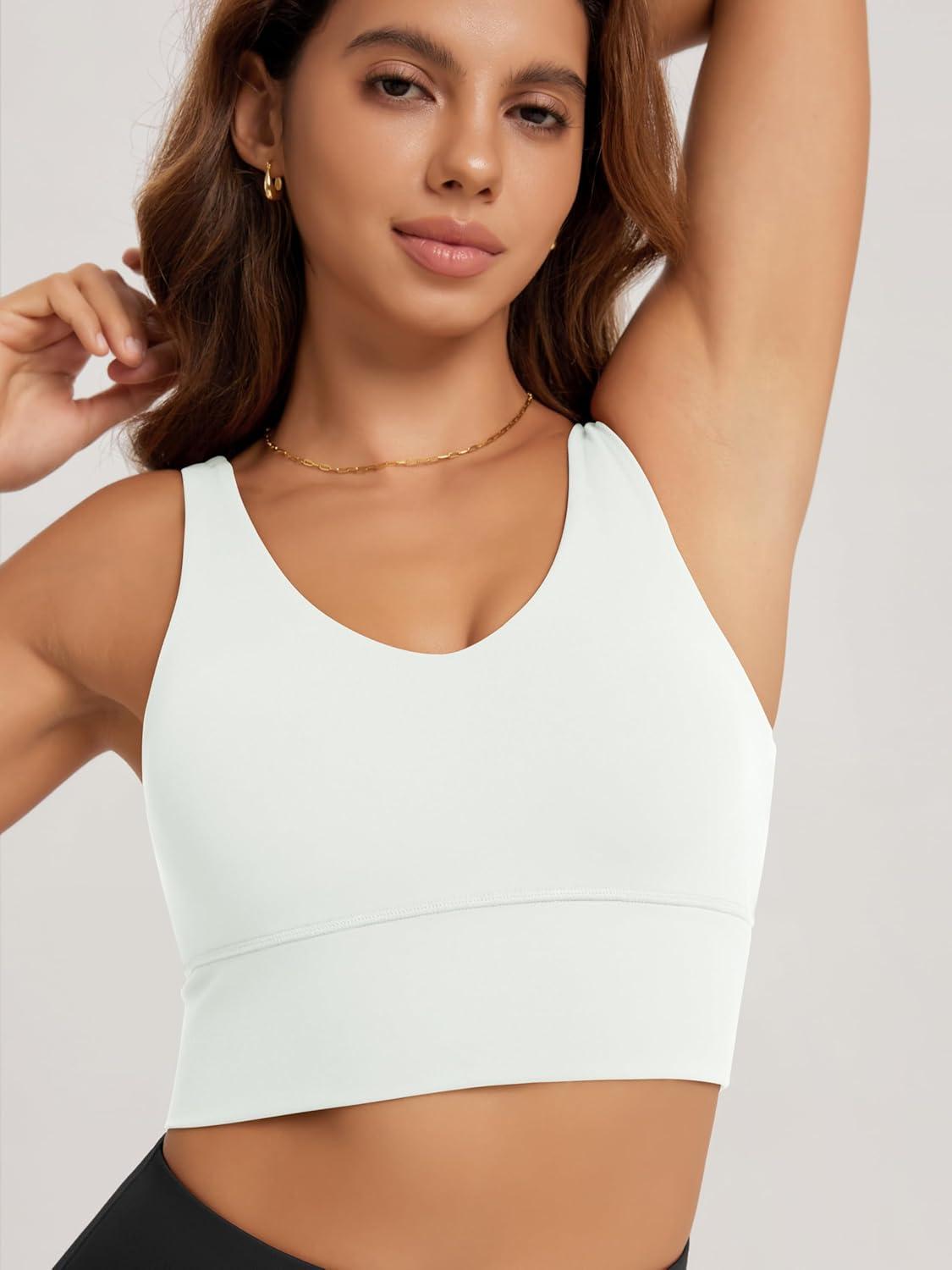ODODOS Women's Longline U-Back Sports Bra V-Neck Padded Yoga Workout Wirefree Tank Top(Porcelain White)
