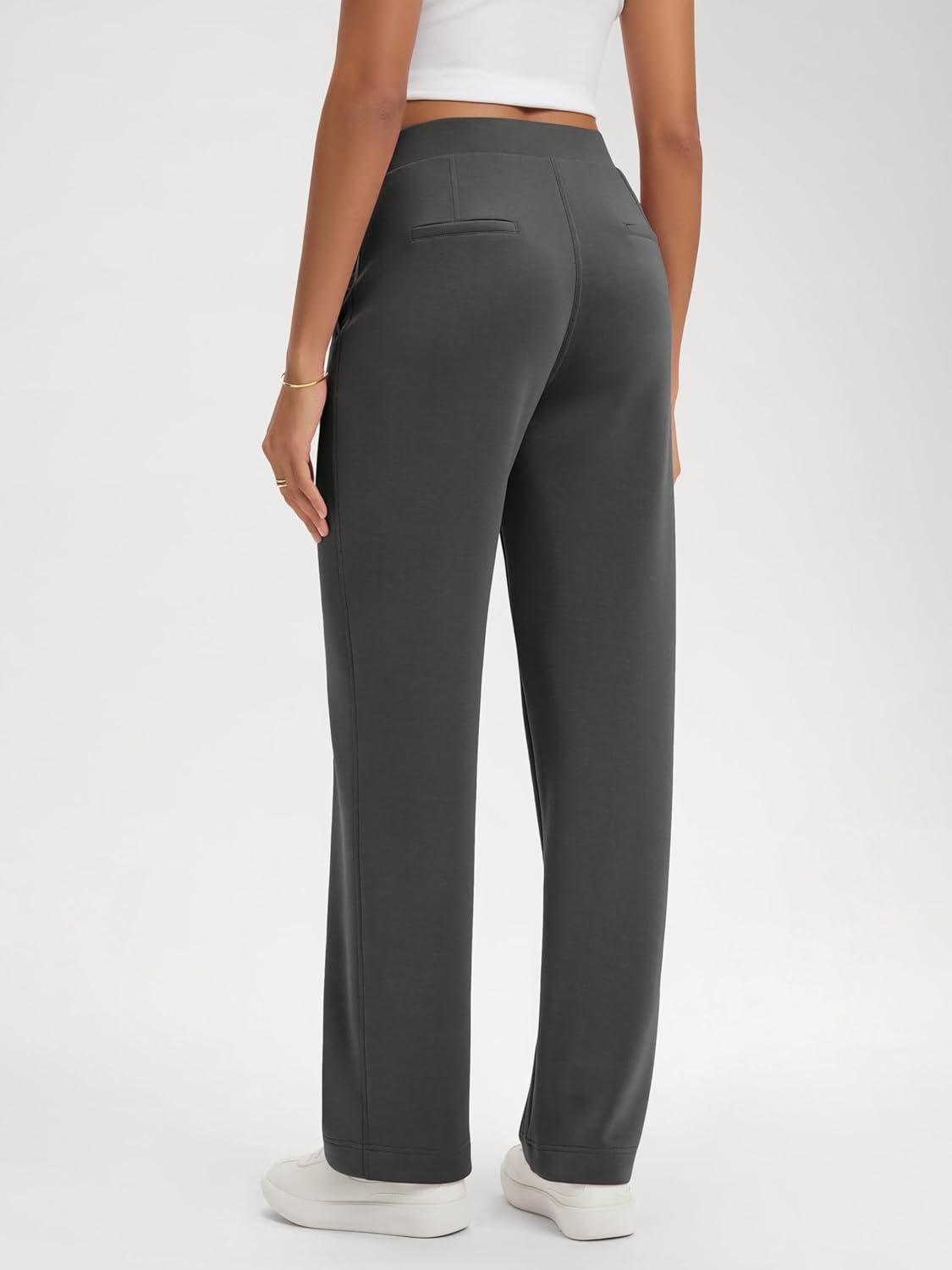 ODODOS Women’s Modal Soft Classic Pants Mid Rise Pull-On Lounge Casual Work Pants with Pockets- 27″ / 29″ / 31″ Inseam(Charcoal)