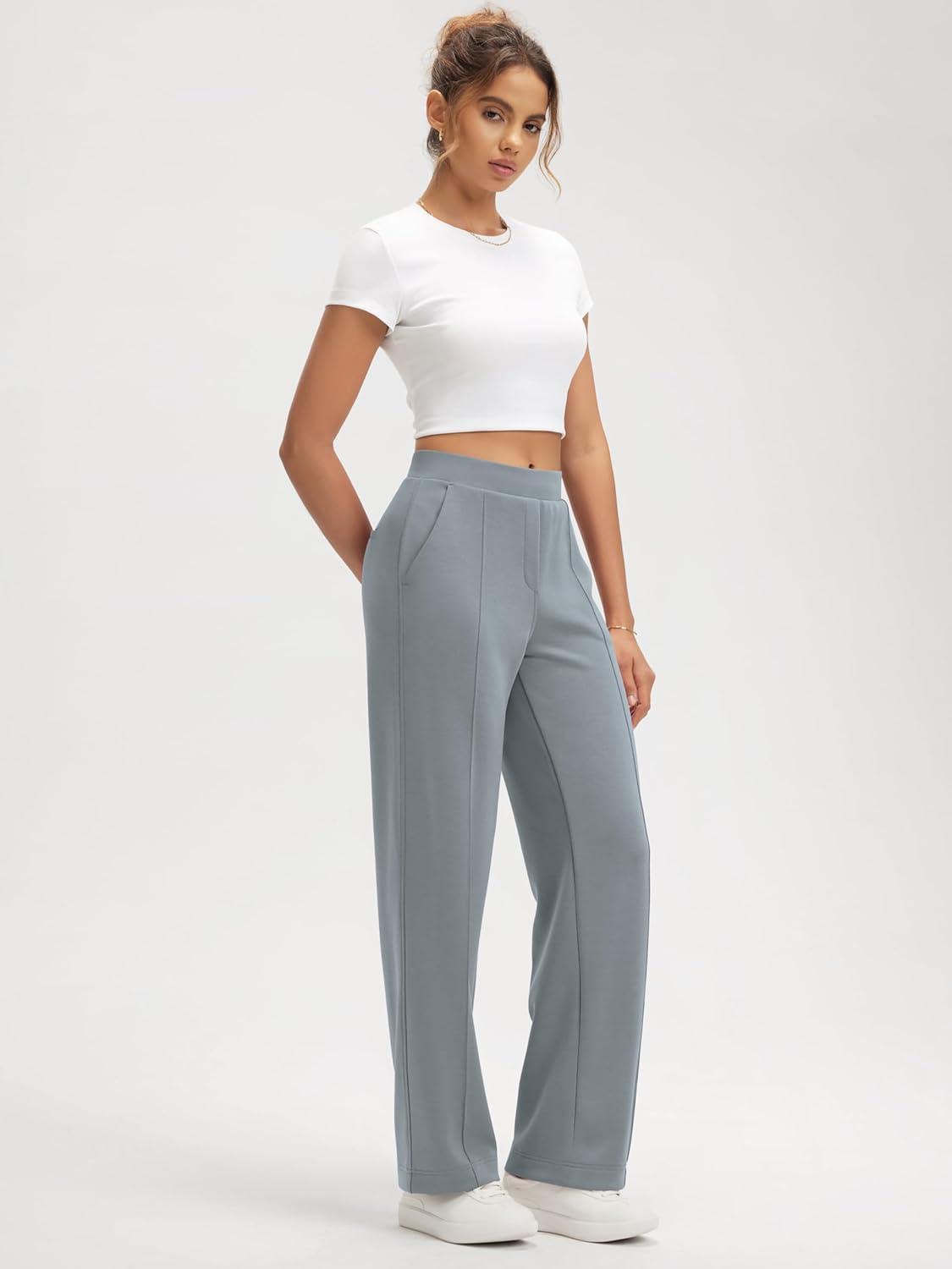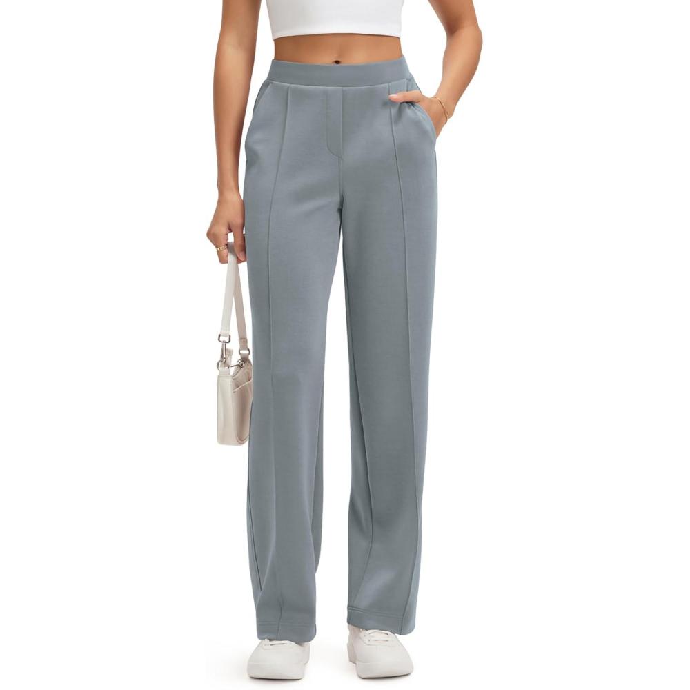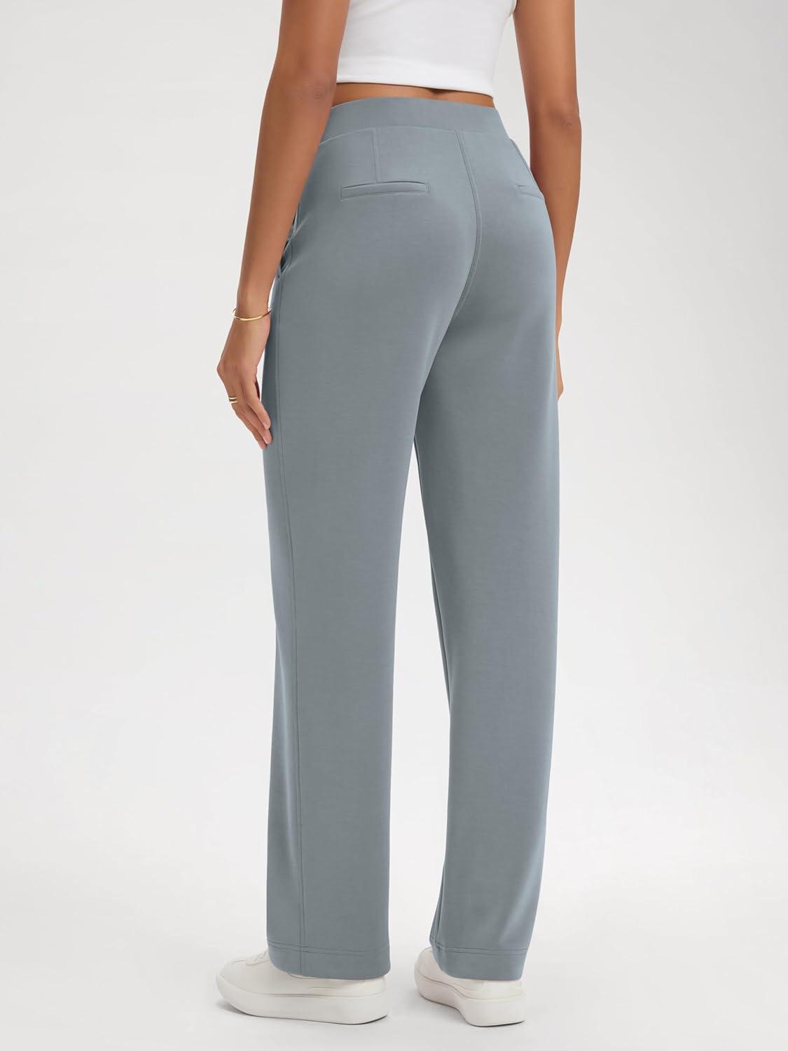 ODODOS Women’s Modal Soft Classic Pants Mid Rise Pull-On Lounge Casual Work Pants with Pockets- 27″ / 29″ / 31″ Inseam(Grey Blue)