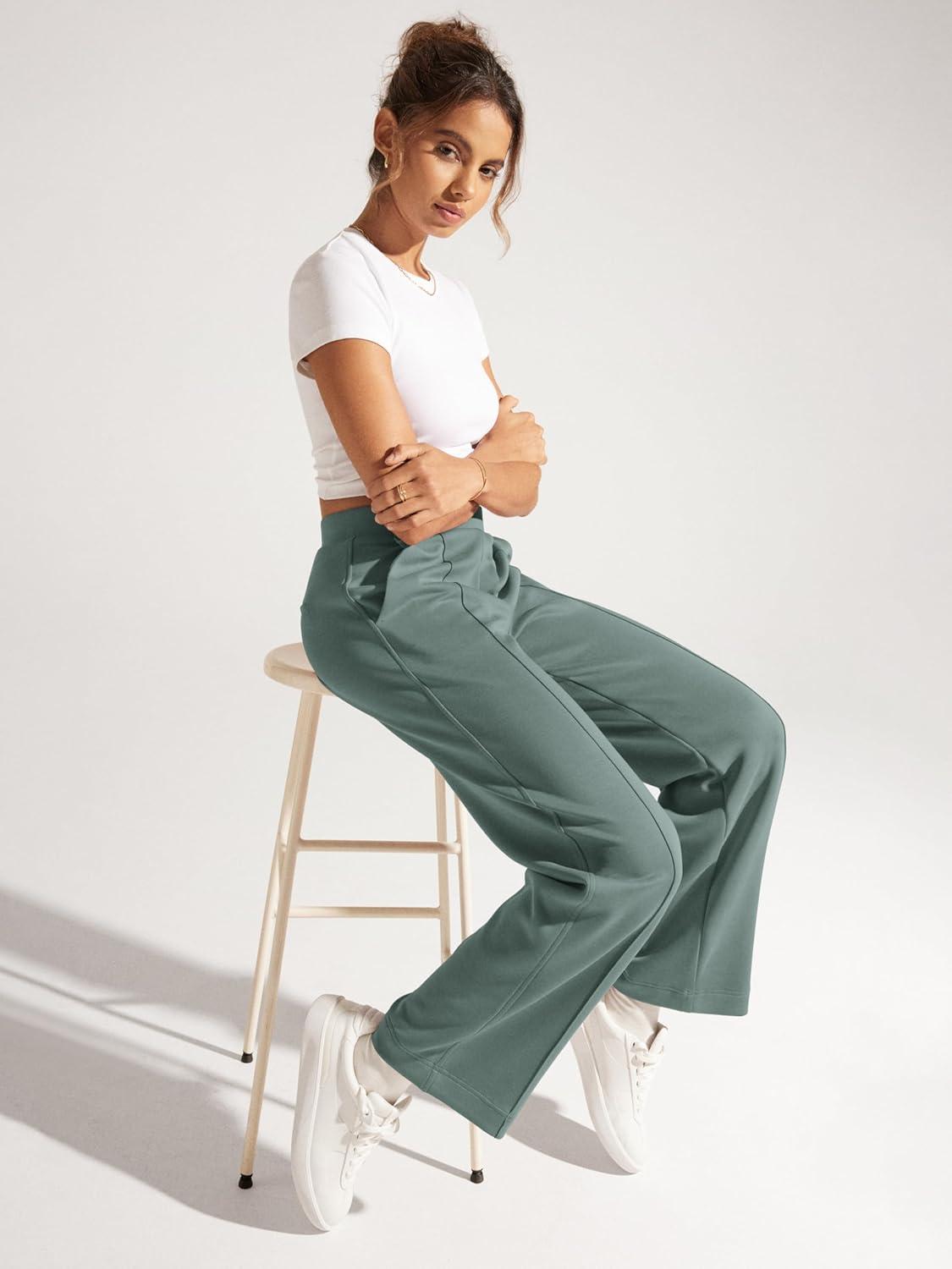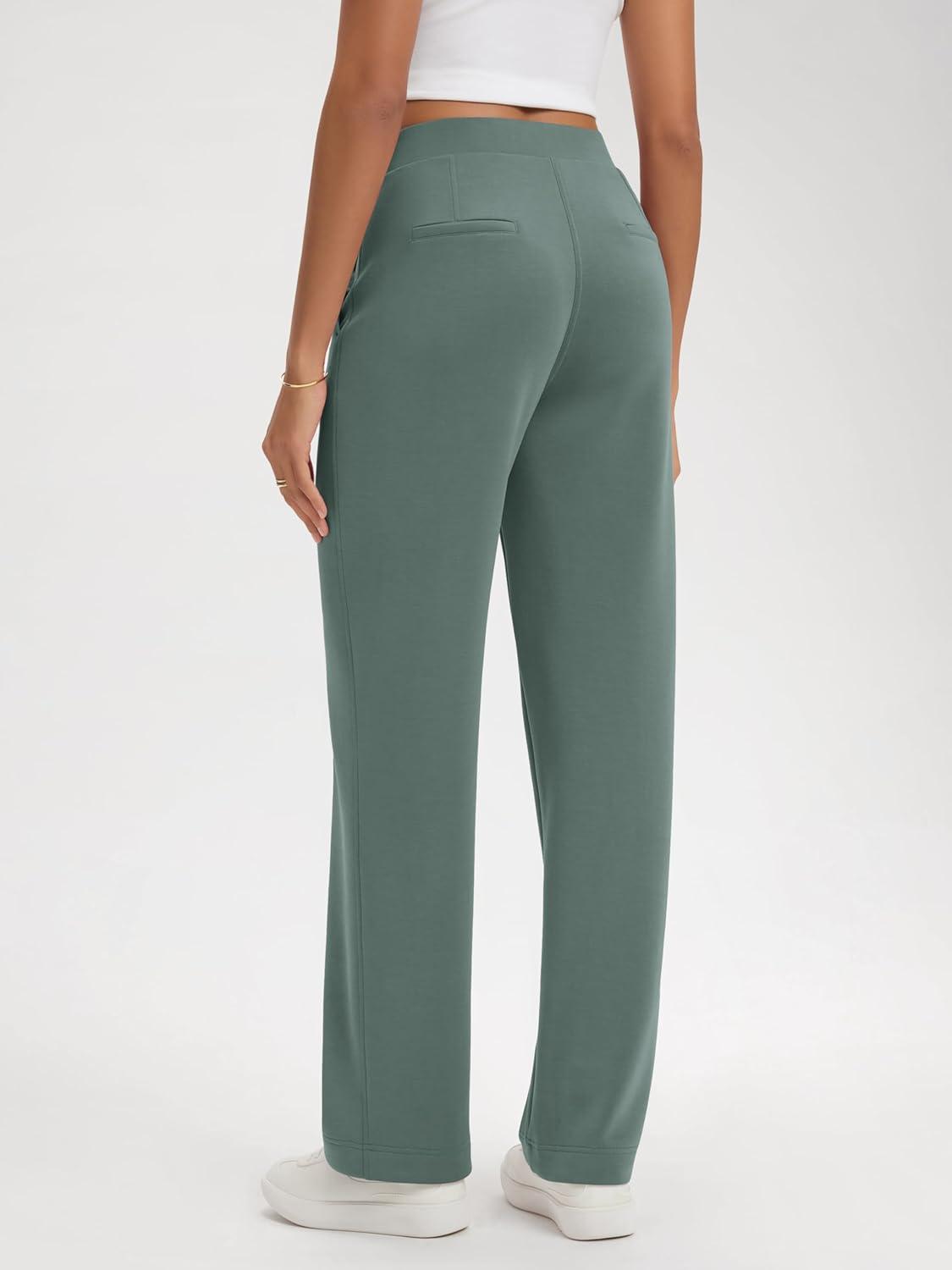 ODODOS Women's Modal Soft Classic Pants Mid Rise Pull-On Lounge Casual Work Pants with Pockets- 27" / 29" / 31" Inseam(Slate Green)