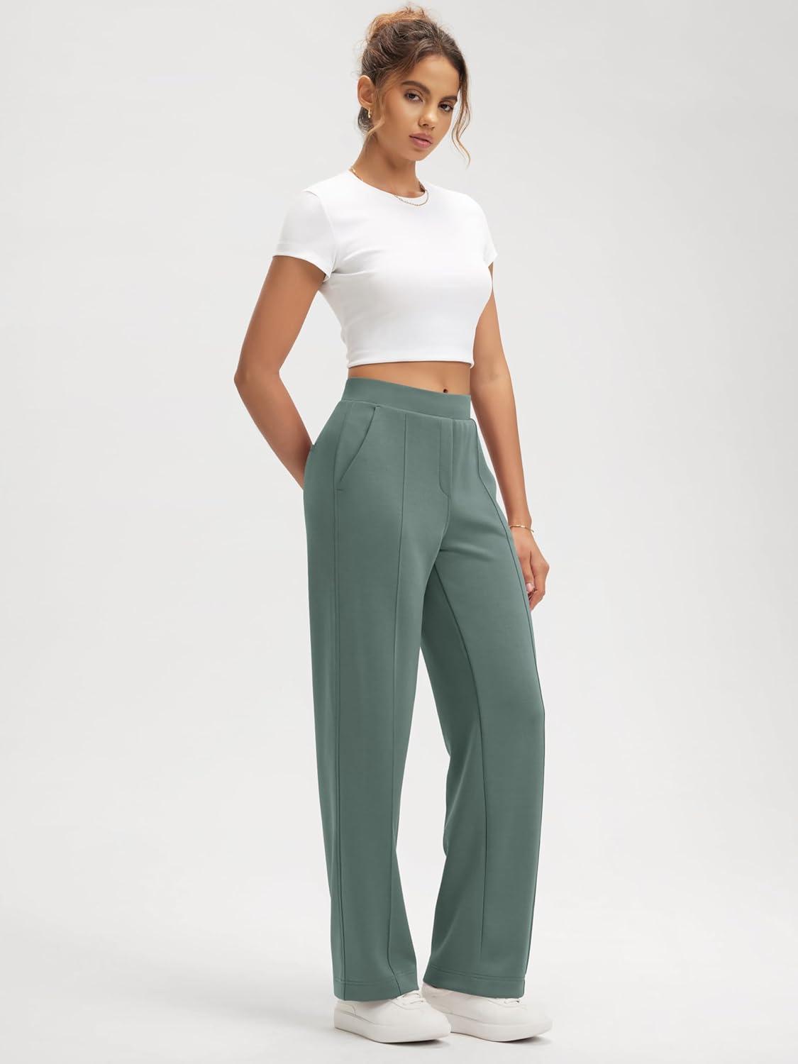 ODODOS Women’s Modal Soft Classic Pants Mid Rise Pull-On Lounge Casual Work Pants with Pockets- 27″ / 29″ / 31″ Inseam(Slate Green)