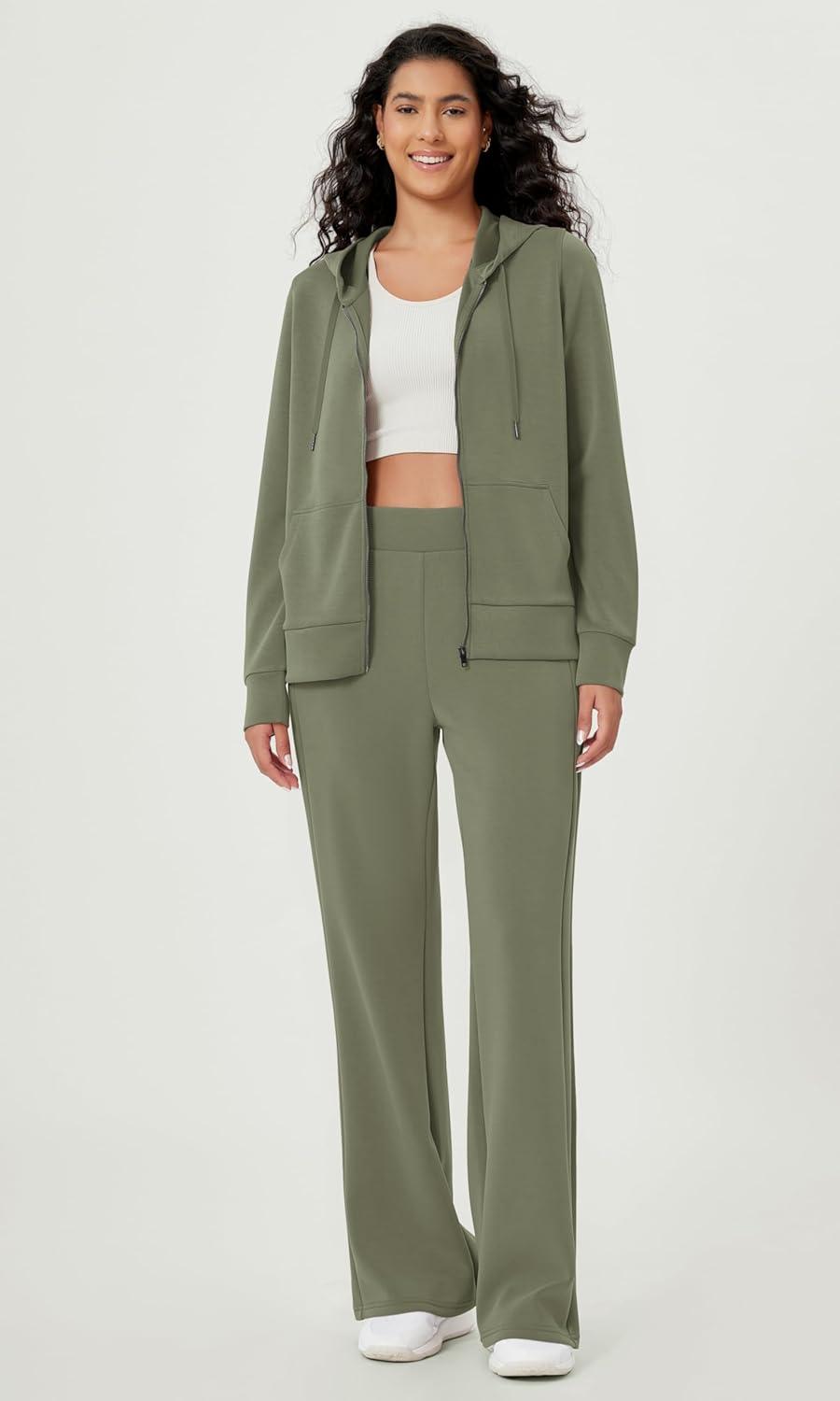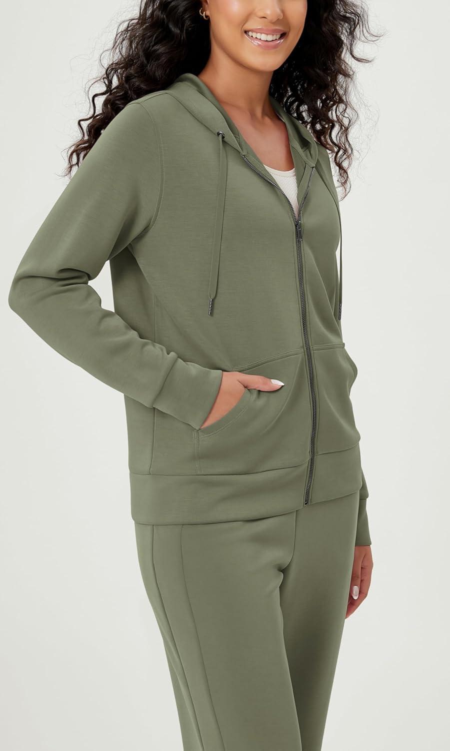 ODODOS Women’s Modal Soft Full-Zip Hoodies Casual Relaxed Fall Outfit Hooded Jacket with Pockets(Dark Sage)