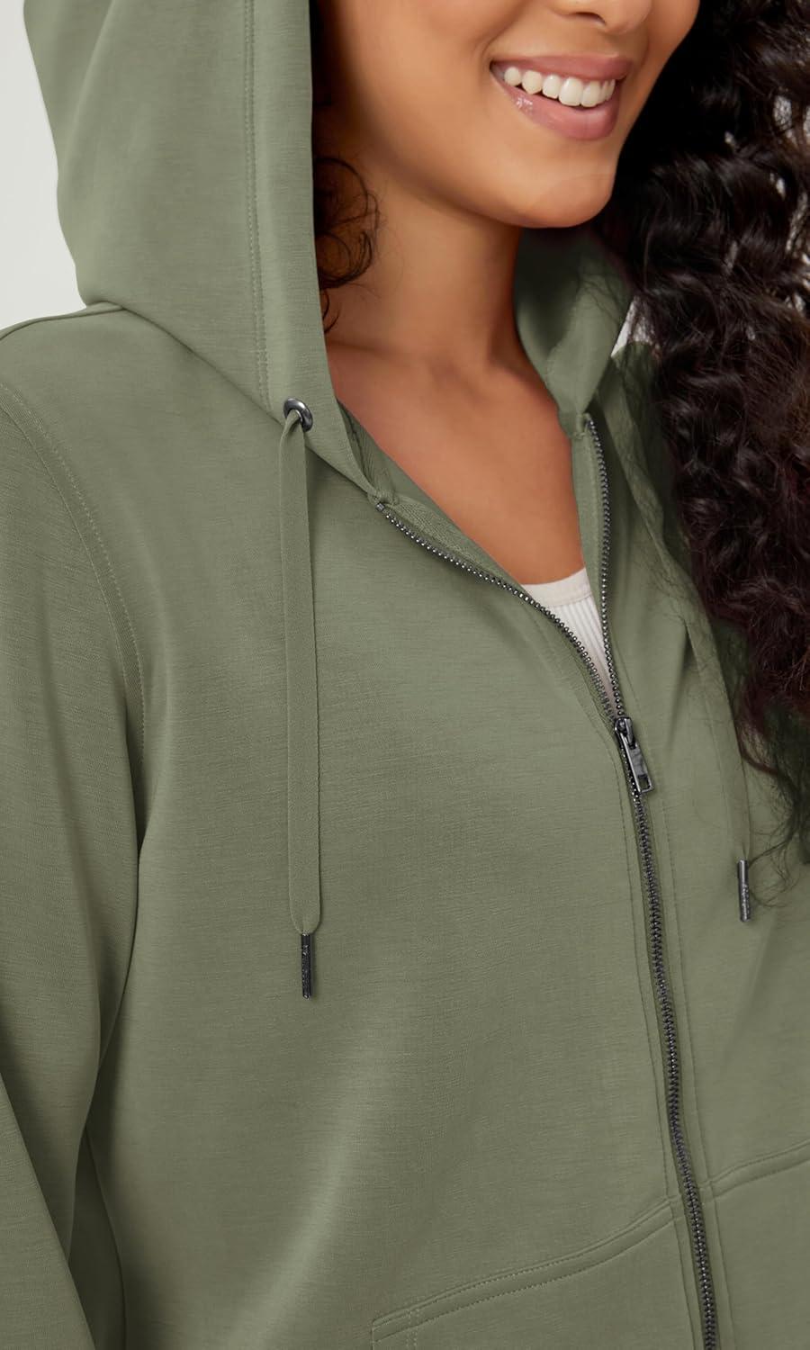 imageODODOS Womens Modal Soft FullZip Hoodies Casual Relaxed Fall Outfit Hooded Jacket with PocketsDark Sage