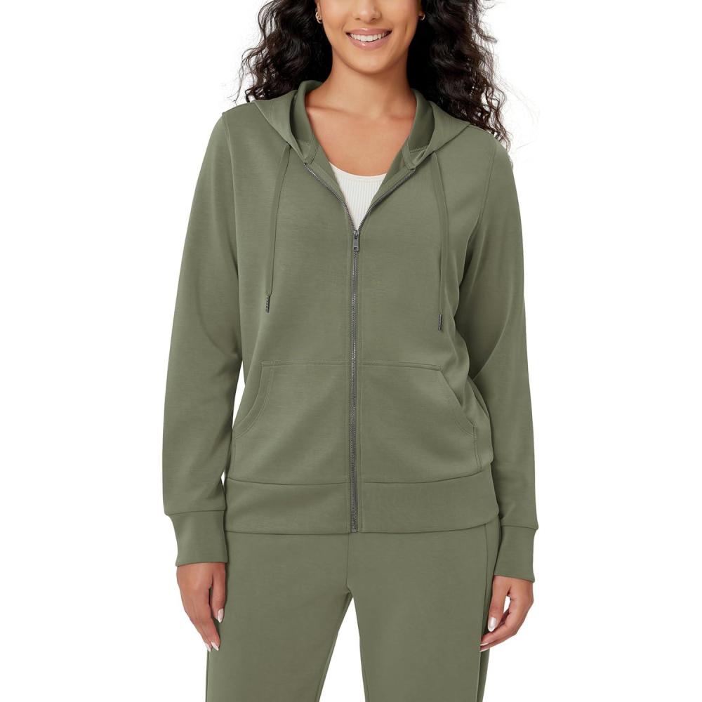 ODODOS Women's Modal Soft Full-Zip Hoodies Casual Relaxed Fall Outfit Hooded Jacket with Pockets(Dark Sage)