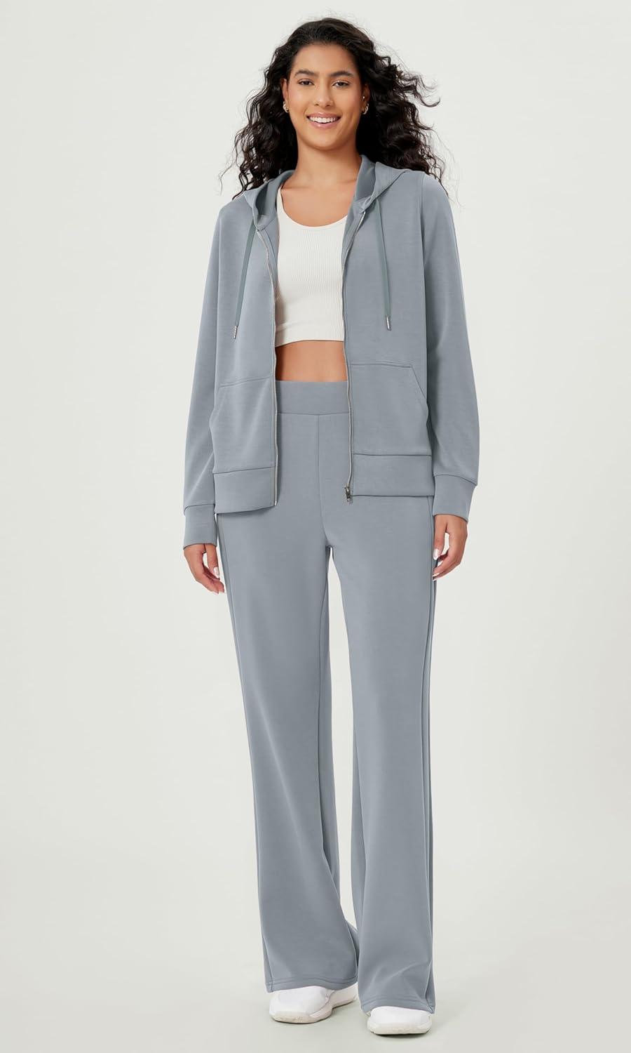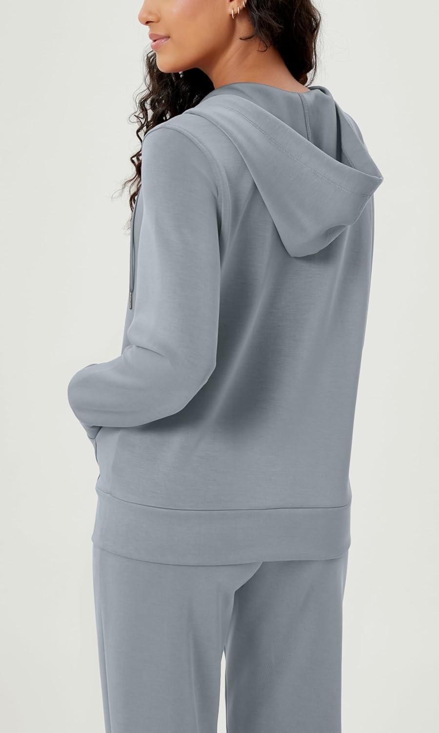 ODODOS Women’s Modal Soft Full-Zip Hoodies Casual Relaxed Fall Outfit Hooded Jacket with Pockets(Grey Blue)