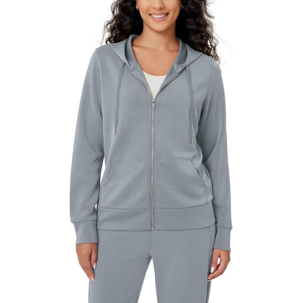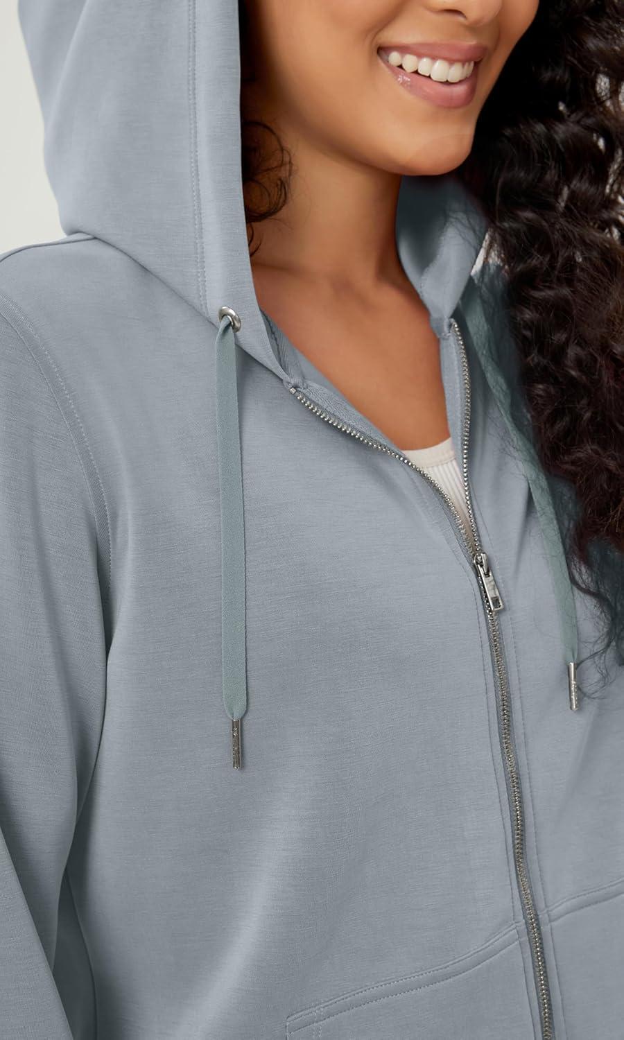 ODODOS Women's Modal Soft Full-Zip Hoodies Casual Relaxed Fall Outfit Hooded Jacket with Pockets(Grey Blue)