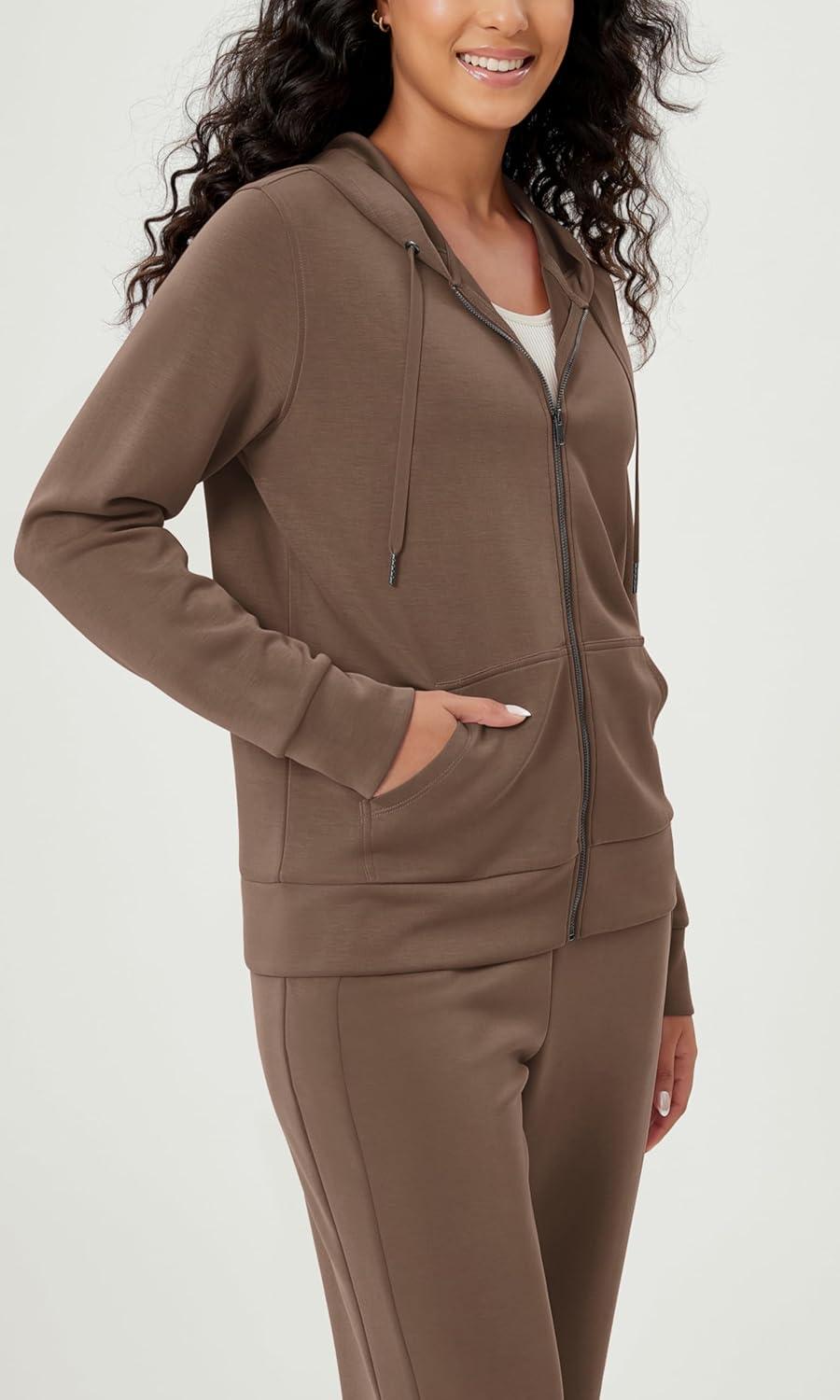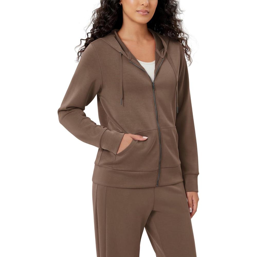 ODODOS Women's Modal Soft Full-Zip Hoodies Casual Relaxed Fall Outfit Hooded Jacket with Pockets(Nutria)