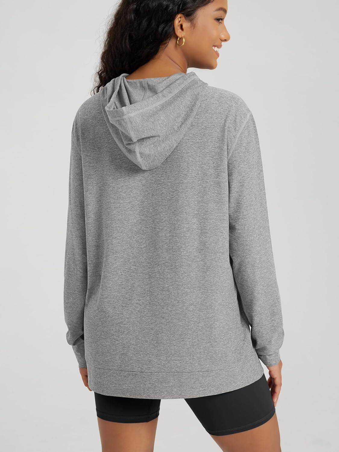 ODODOS Women's Oversized Hoodie - Ultra Soft Stratum Tech Pullover UPF 50+ Long Sleeve Tops with Kangaroo Pocket(Grey Heather)