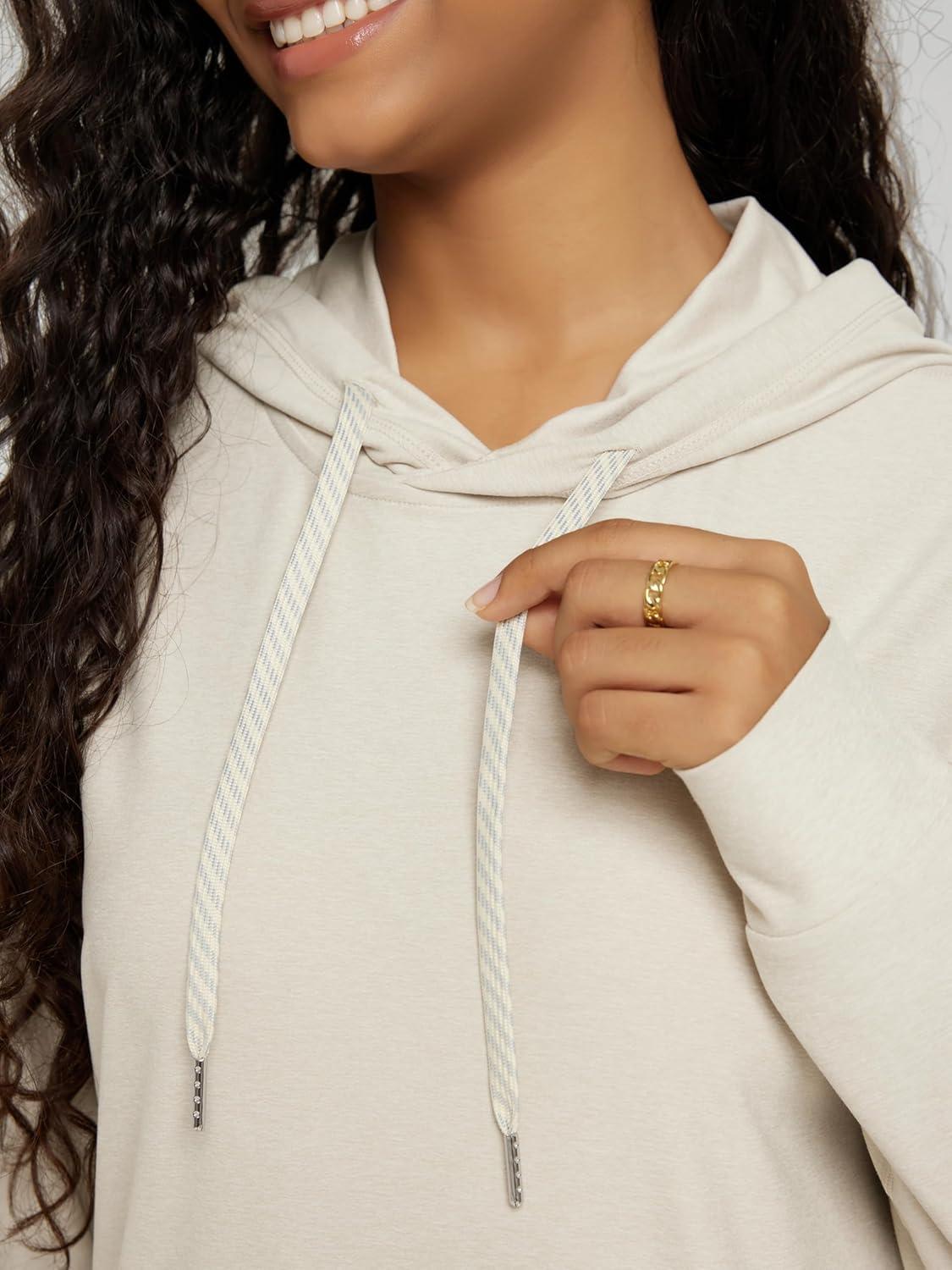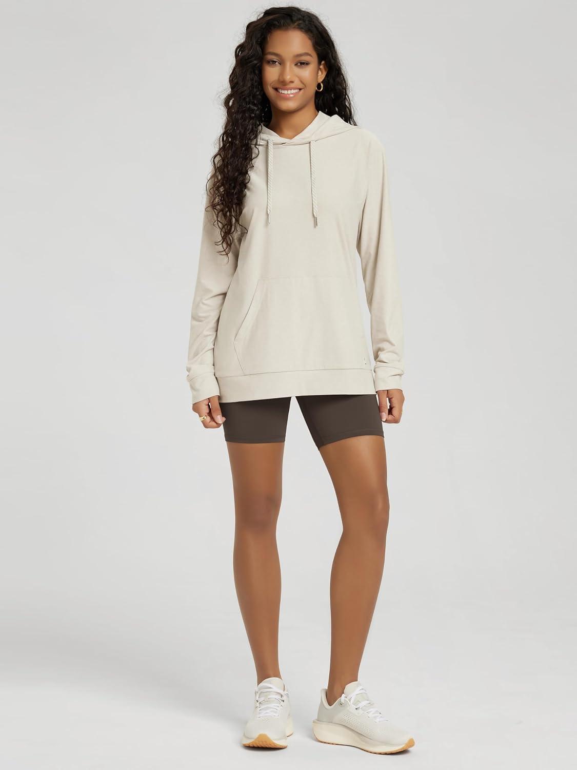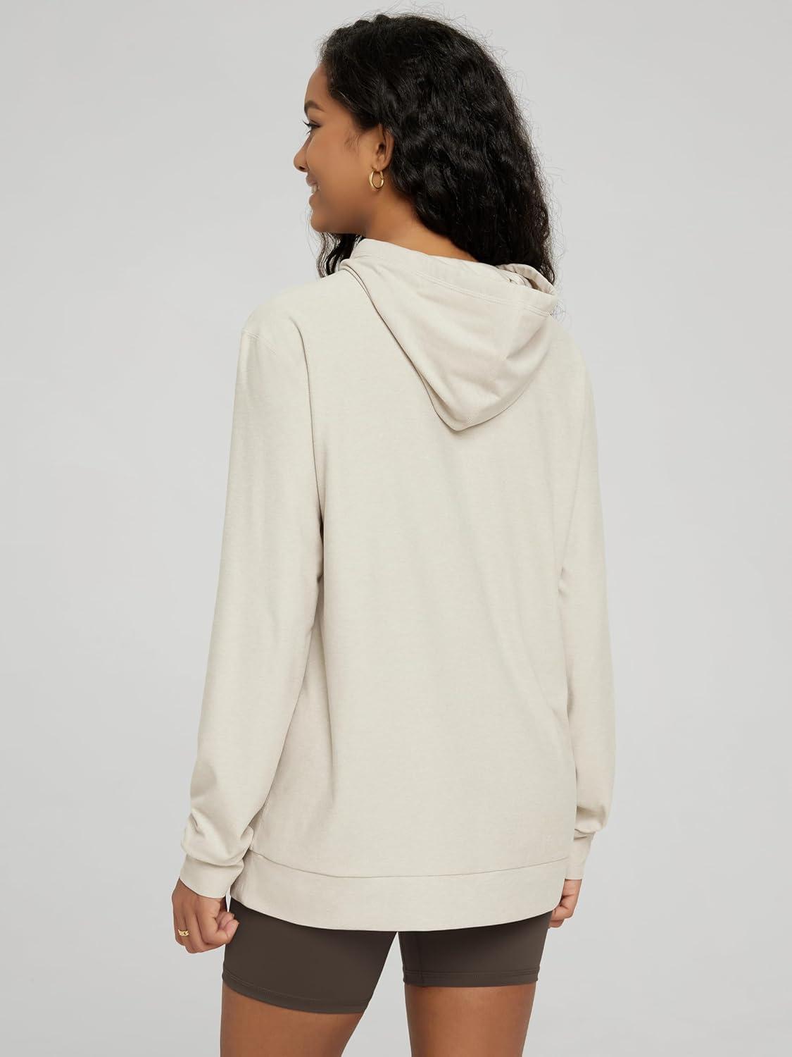 ODODOS Women’s Oversized Hoodie – Ultra Soft Stratum Tech Pullover UPF 50+ Long Sleeve Tops with Kangaroo Pocket(Milkweed Heather)