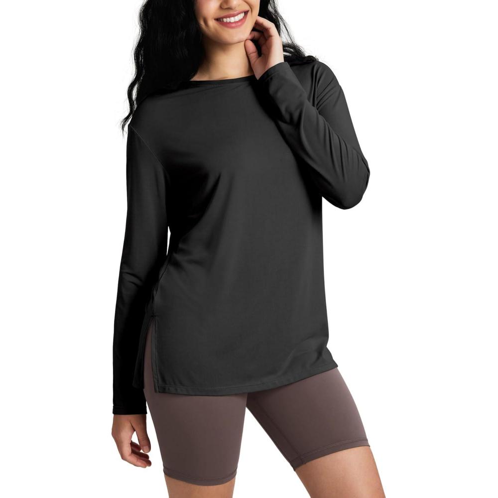 Get the ODODOS Women’s Peach-Soft Boat Neck Long Sleeve Shirt, Side Slit, Relaxed Fit Casual Top for Yoga & Lounge(Black) you want at a price you can afford with our markdown sale.