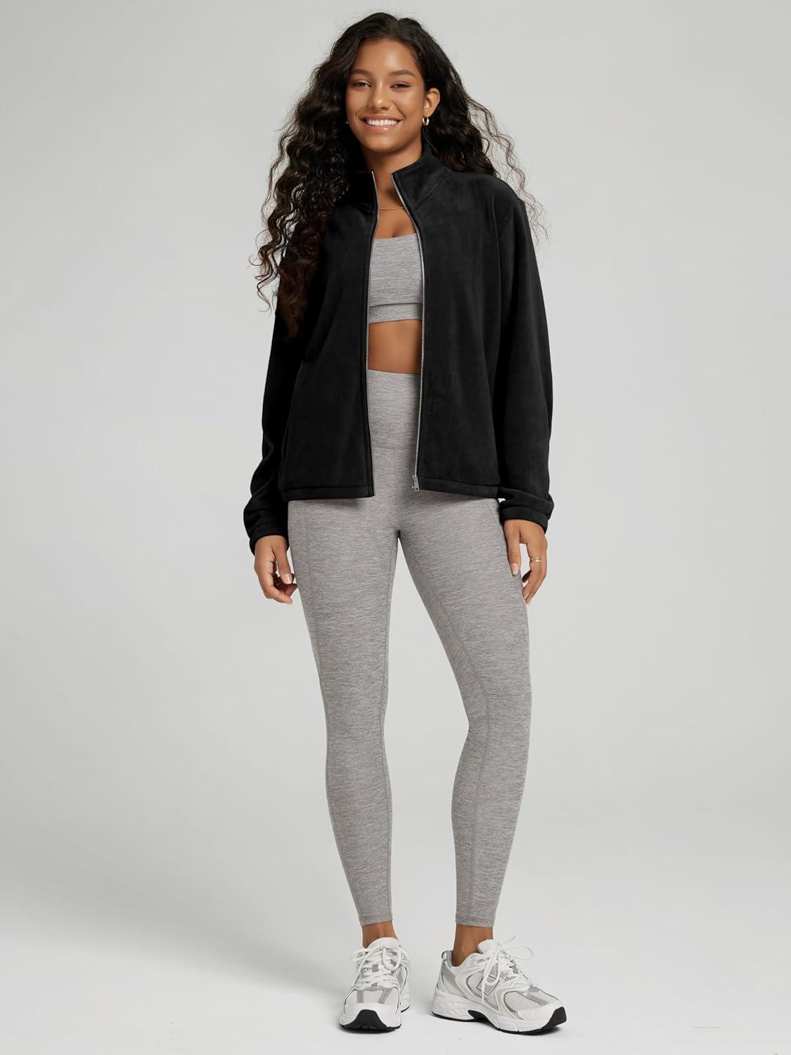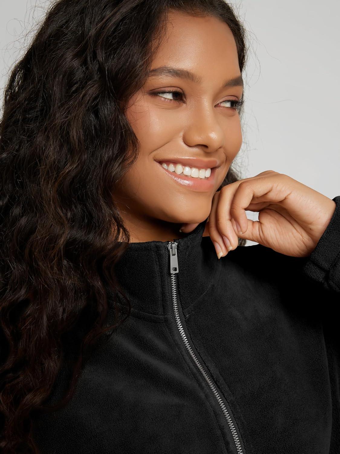 ODODOS Women's Polar Fleece Full-Zip Jacket – Soft Warm Winter Essential Long Sleeve Outerwear with Pockets(Black)