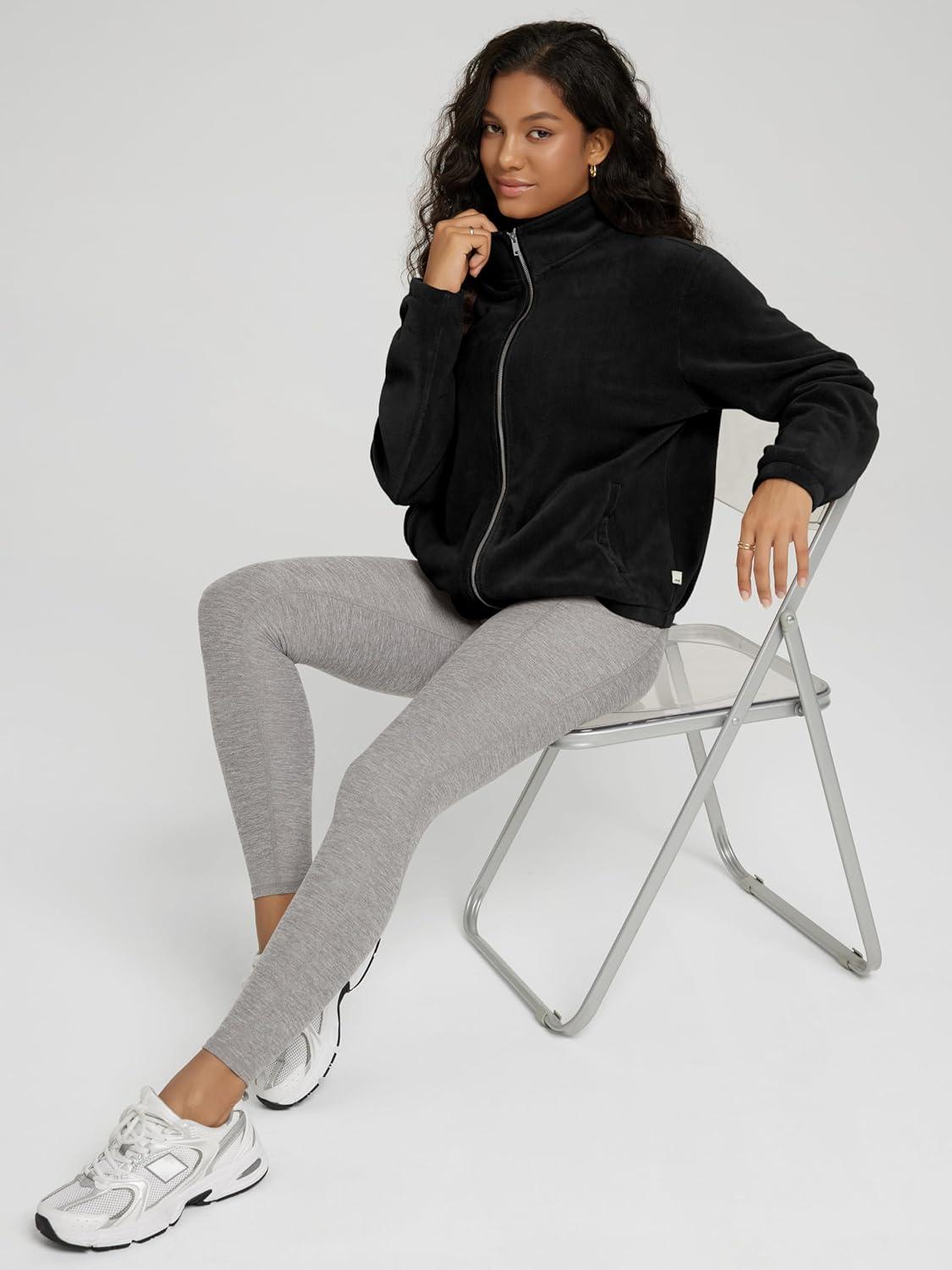 imageODODOS Womens Polar Fleece FullZip Jacket  Soft Warm Winter Essential Long Sleeve Outerwear with PocketsBlack