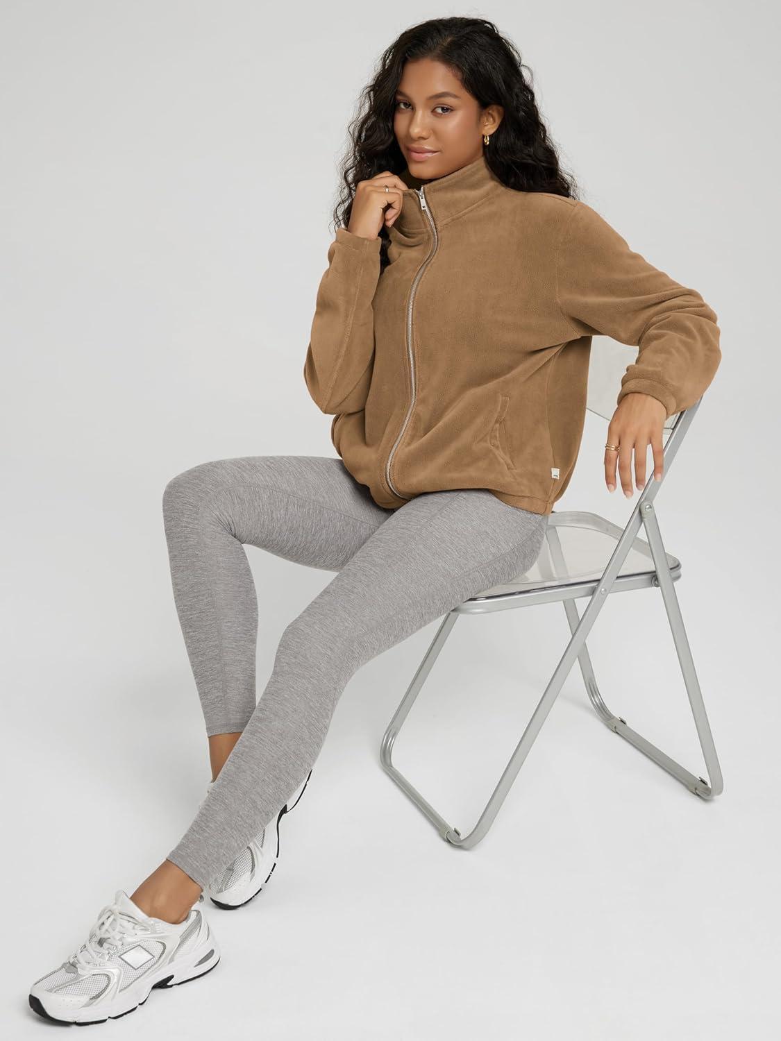 imageODODOS Womens Polar Fleece FullZip Jacket  Soft Warm Winter Essential Long Sleeve Outerwear with PocketsCaramel Brown