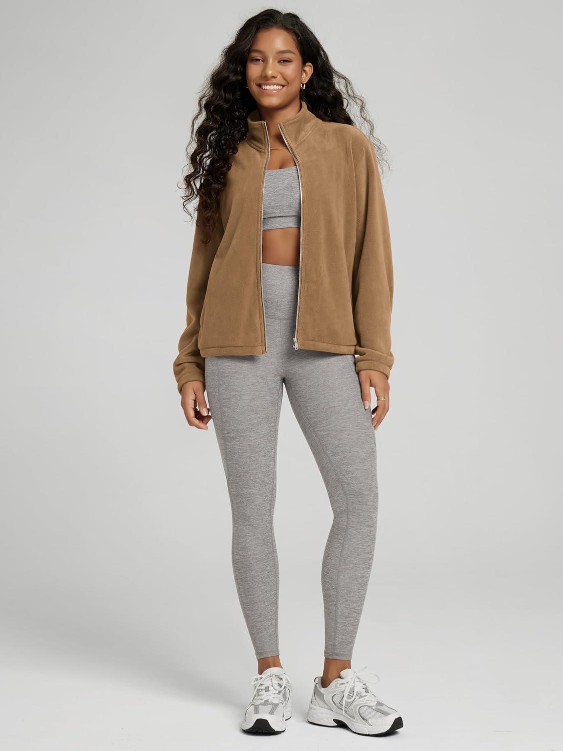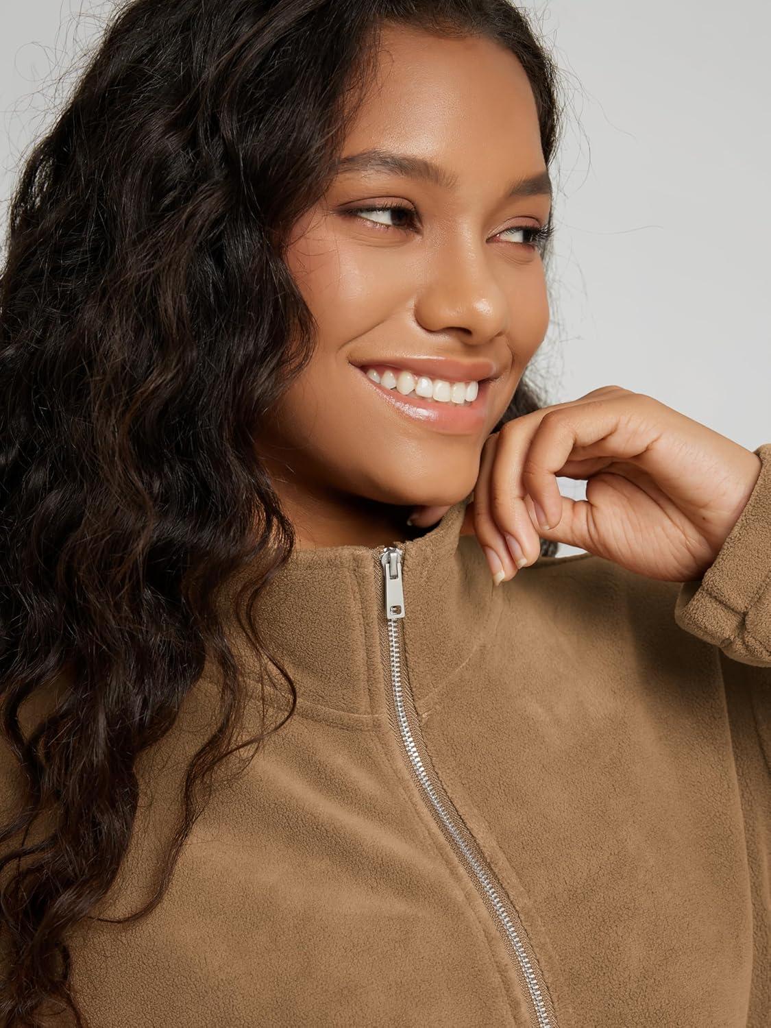 ODODOS Women's Polar Fleece Full-Zip Jacket – Soft Warm Winter Essential Long Sleeve Outerwear with Pockets(Caramel Brown)