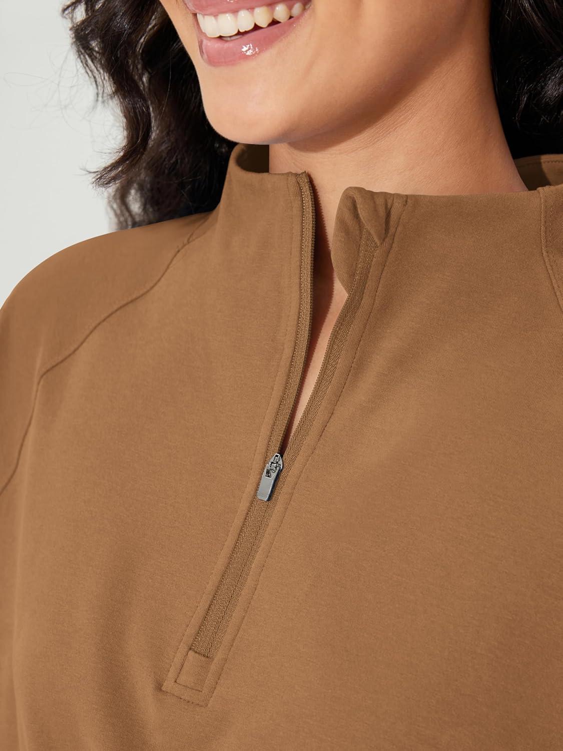 imageODODOS Womens Purevibe Cotton HalfZip Pullover Funnel Neck Sweatshirts Long Sleeve TopsBrown
