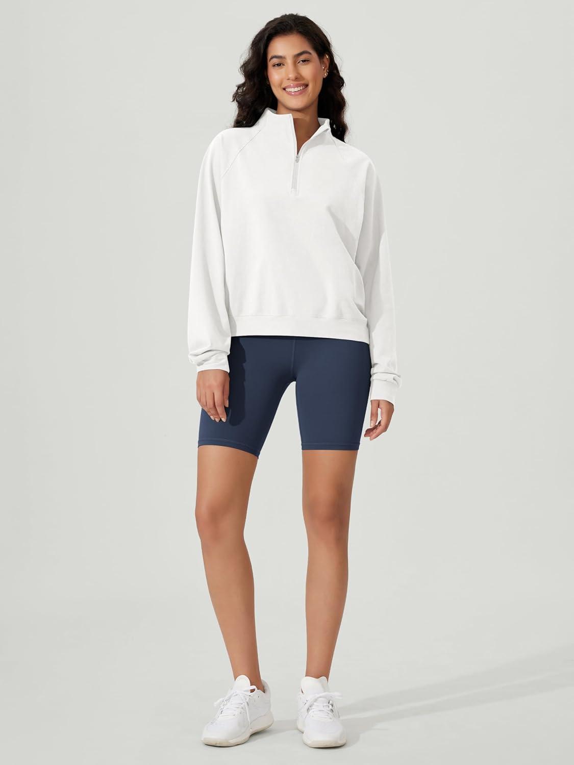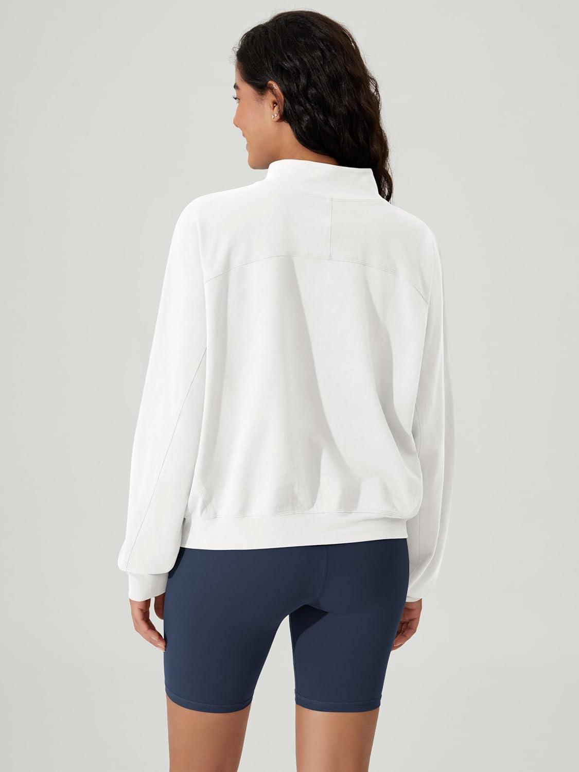 ODODOS Women’s Purevibe Cotton Half-Zip Pullover Funnel Neck Sweatshirts Long Sleeve Tops(White)