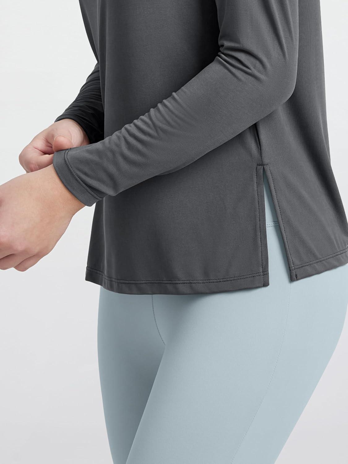 Be the first to review “ODODOS Women’s Relaxed Fit Long Sleeve Shirts Boat Neck Side Slit Peach-Soft Casual Lounge Yoga Tops(Charcoal)”