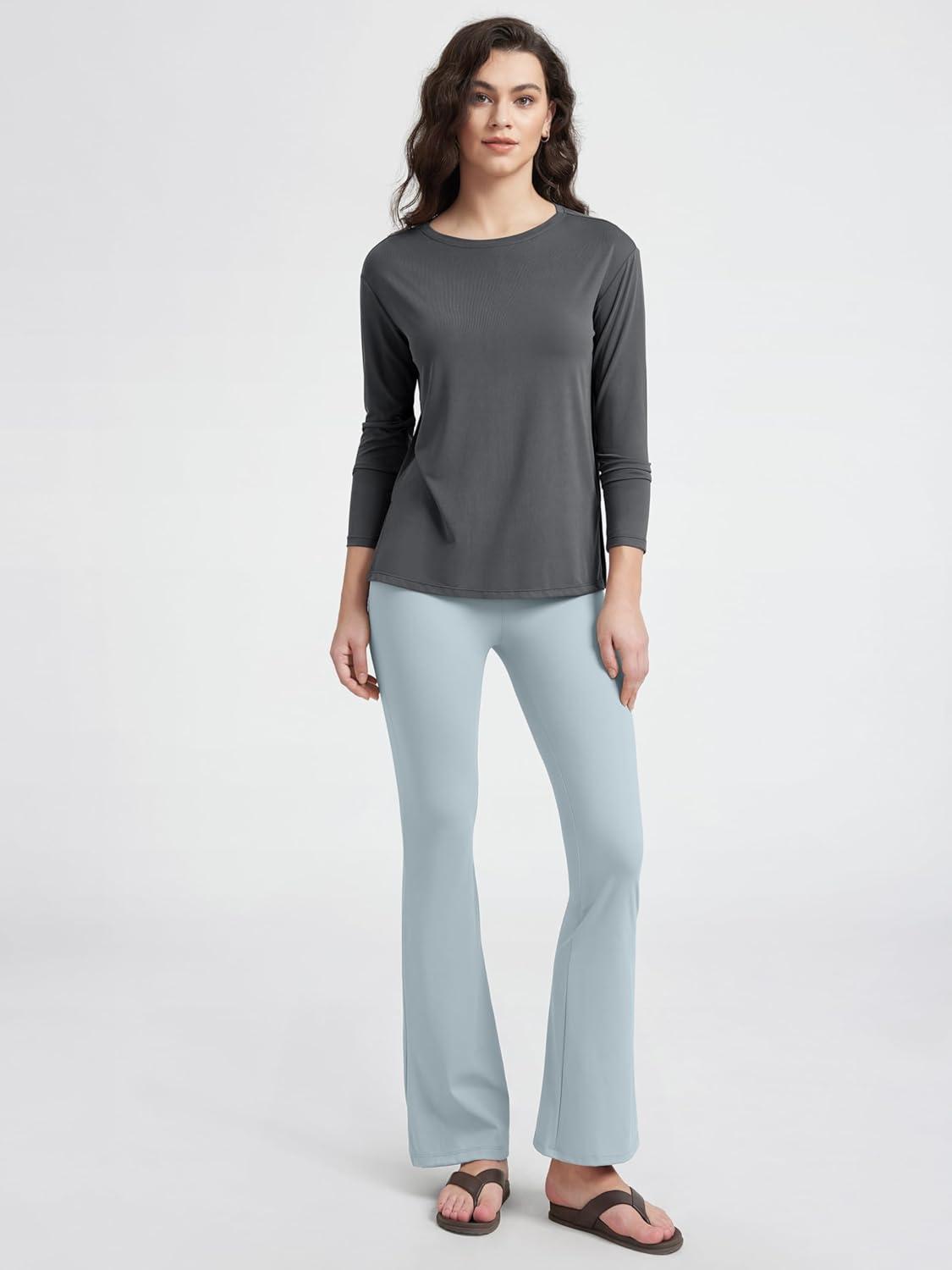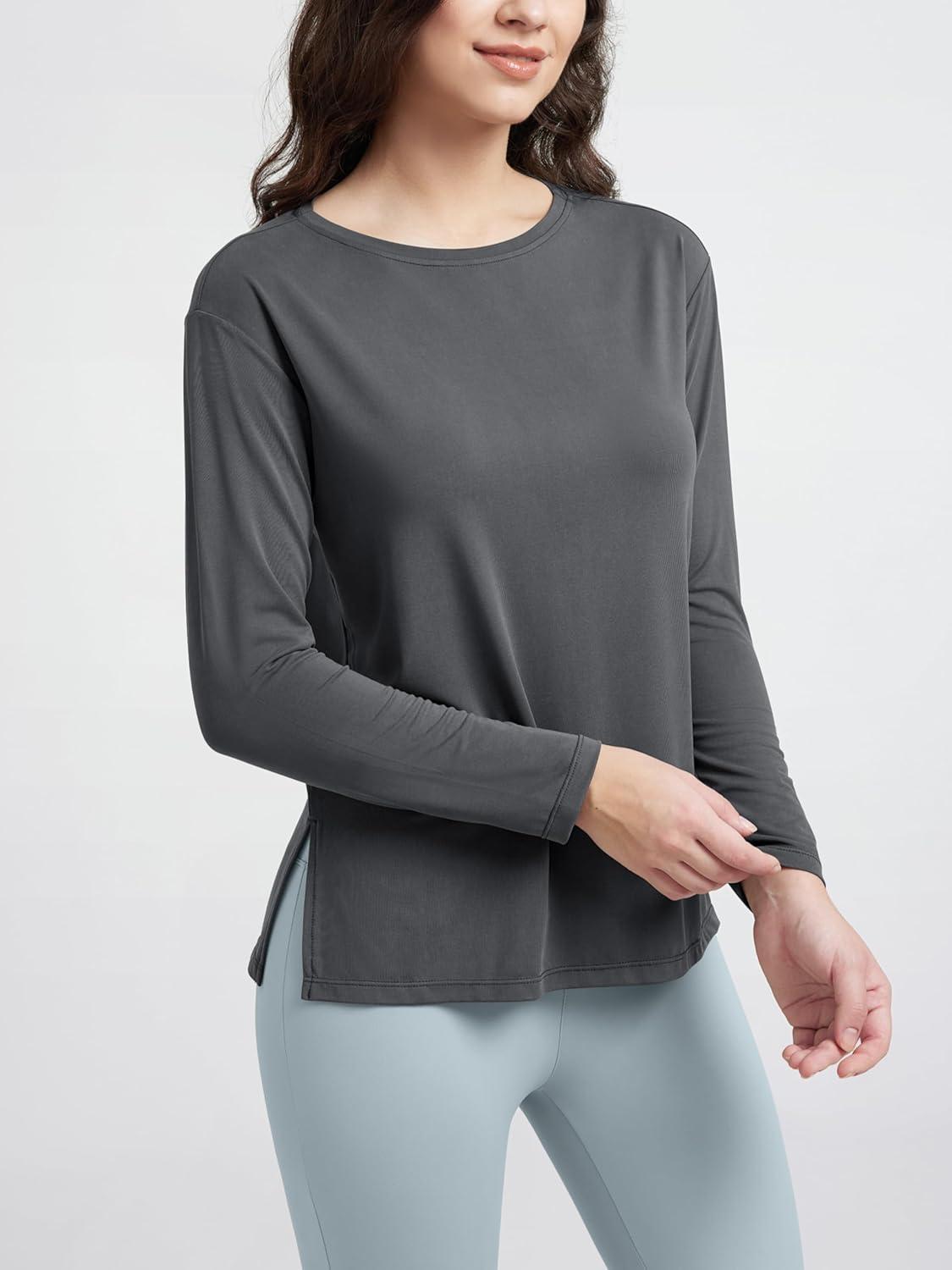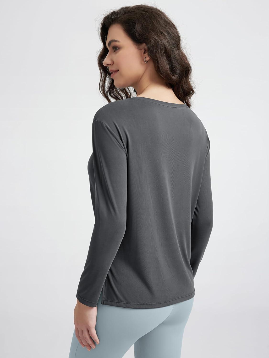 imageODODOS Womens Relaxed Fit Long Sleeve Shirts Boat Neck Side Slit PeachSoft Casual Lounge Yoga TopsCharcoal