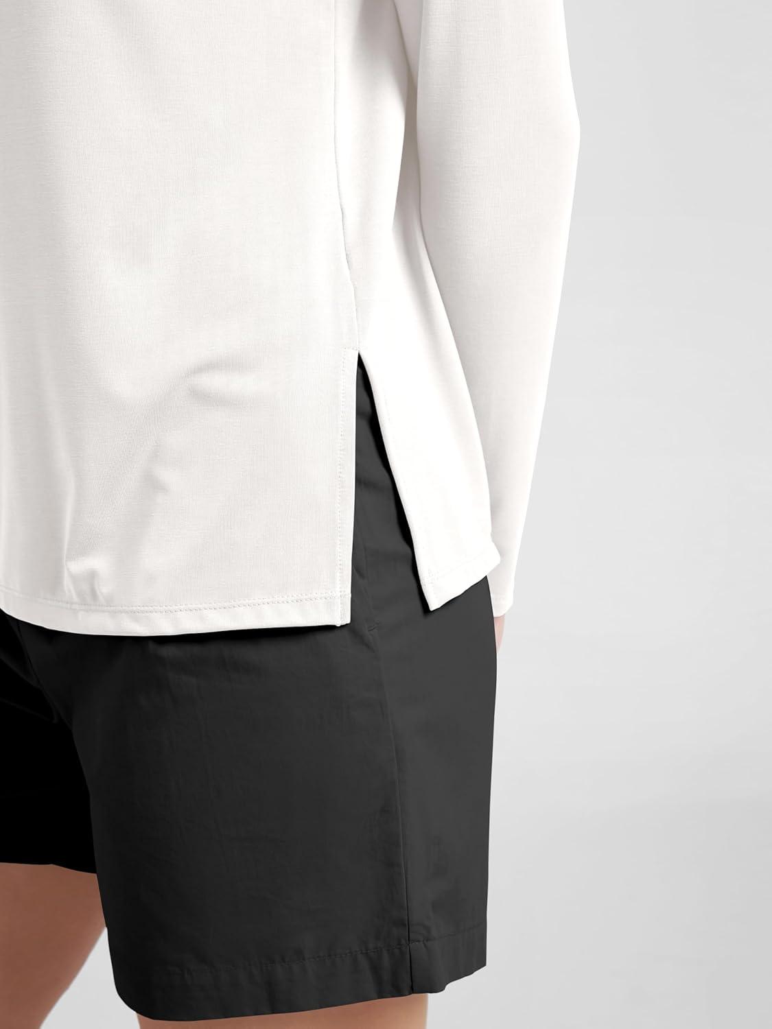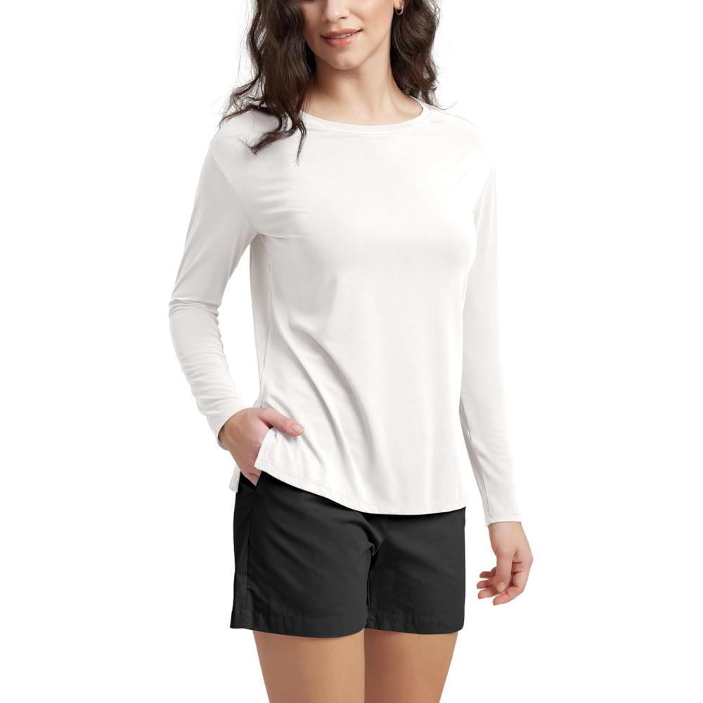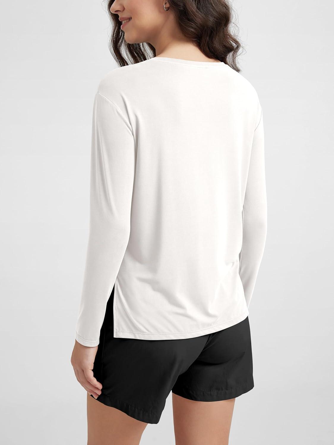 imageODODOS Womens Relaxed Fit Long Sleeve Shirts Boat Neck Side Slit PeachSoft Casual Lounge Yoga TopsMilk White