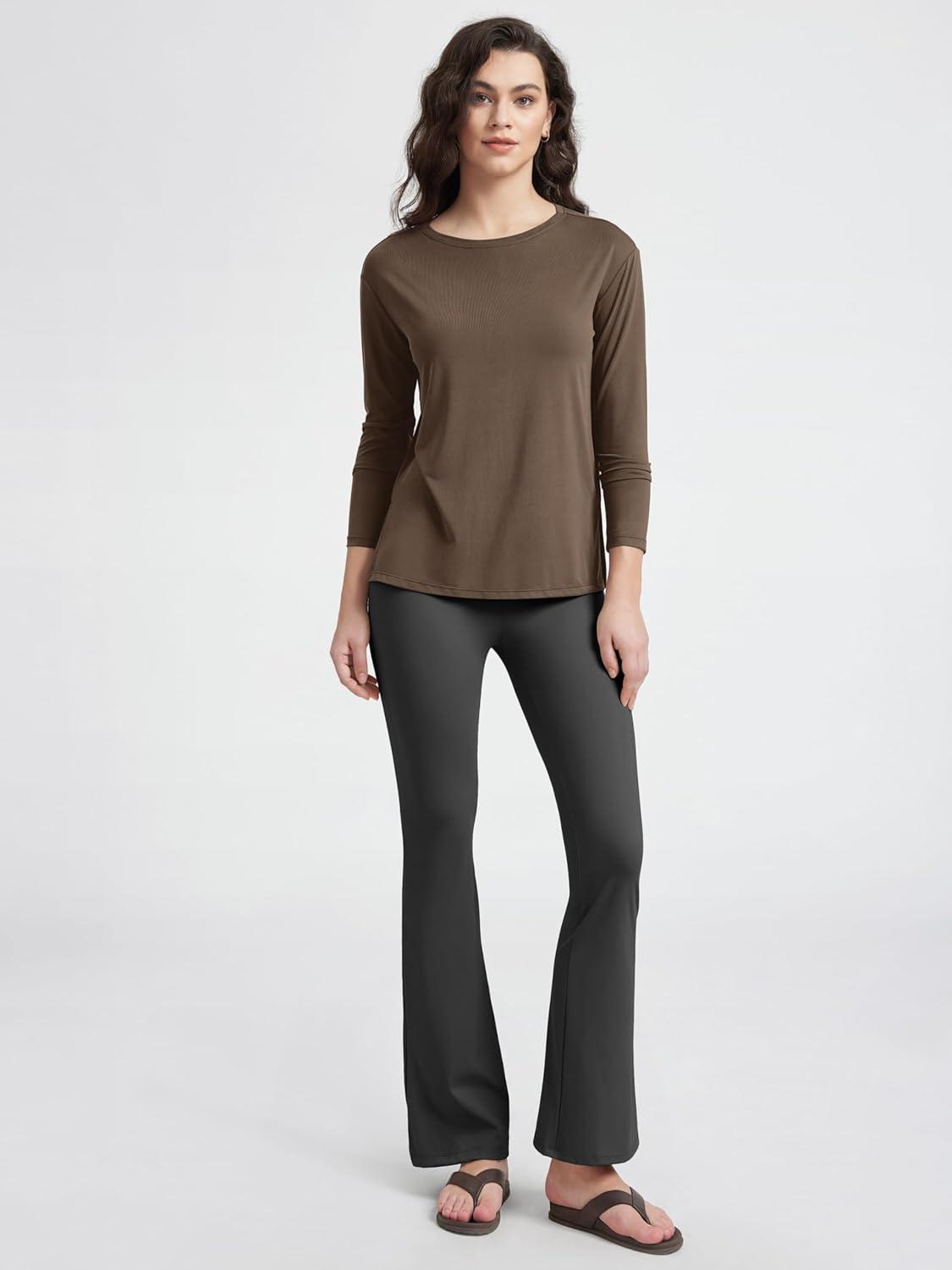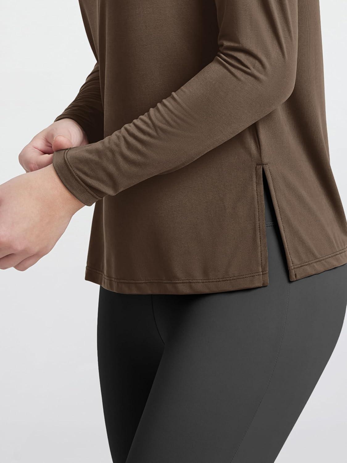 imageODODOS Womens Relaxed Fit Long Sleeve Shirts Boat Neck Side Slit PeachSoft Casual Lounge Yoga TopsNutria