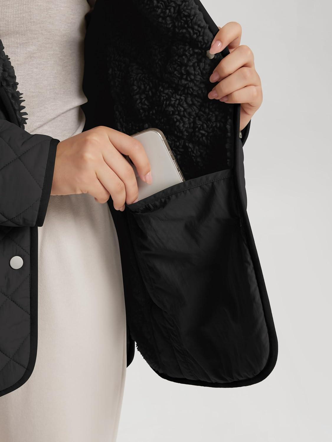 ODODOS Women's Sherpa Lined Insulated Jacket Snap Front Long Sleeve Coat Winter Warm Outerwear with Pockets(Black)