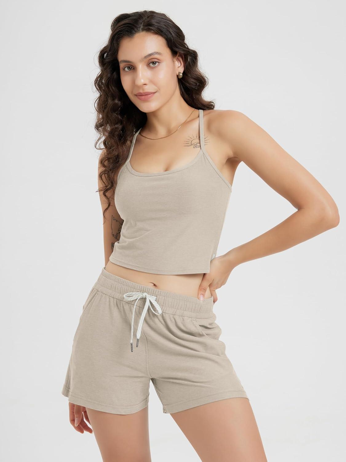 ODODOS Women’s Slim Racerback Cropped Tank – Stratum Tech Sports Bra, Ultra Soft UPF 50+ Cami Top with Built-in Bra(Khaki Heather)