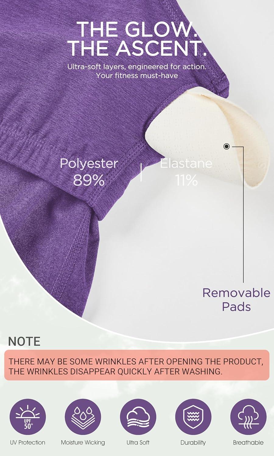 ODODOS Women’s Slim Racerback Cropped Tank – Stratum Tech Sports Bra, Ultra Soft UPF 50+ Cami Top with Built-in Bra(Ultra Violet Heather)