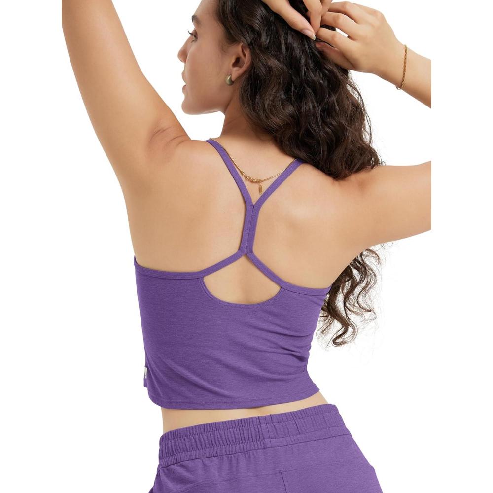 ODODOS Women's Slim Racerback Cropped Tank – Stratum Tech Sports Bra, Ultra Soft UPF 50+ Cami Top with Built-in Bra(Ultra Violet Heather)