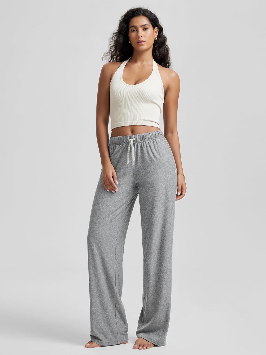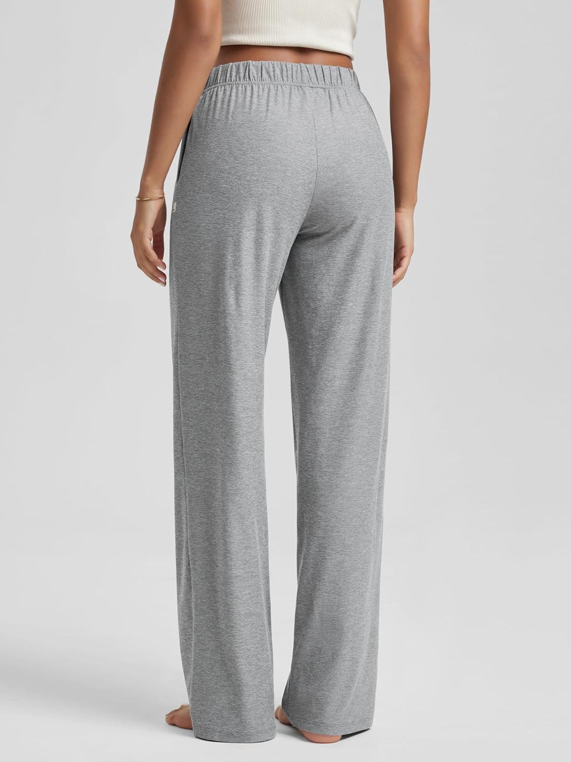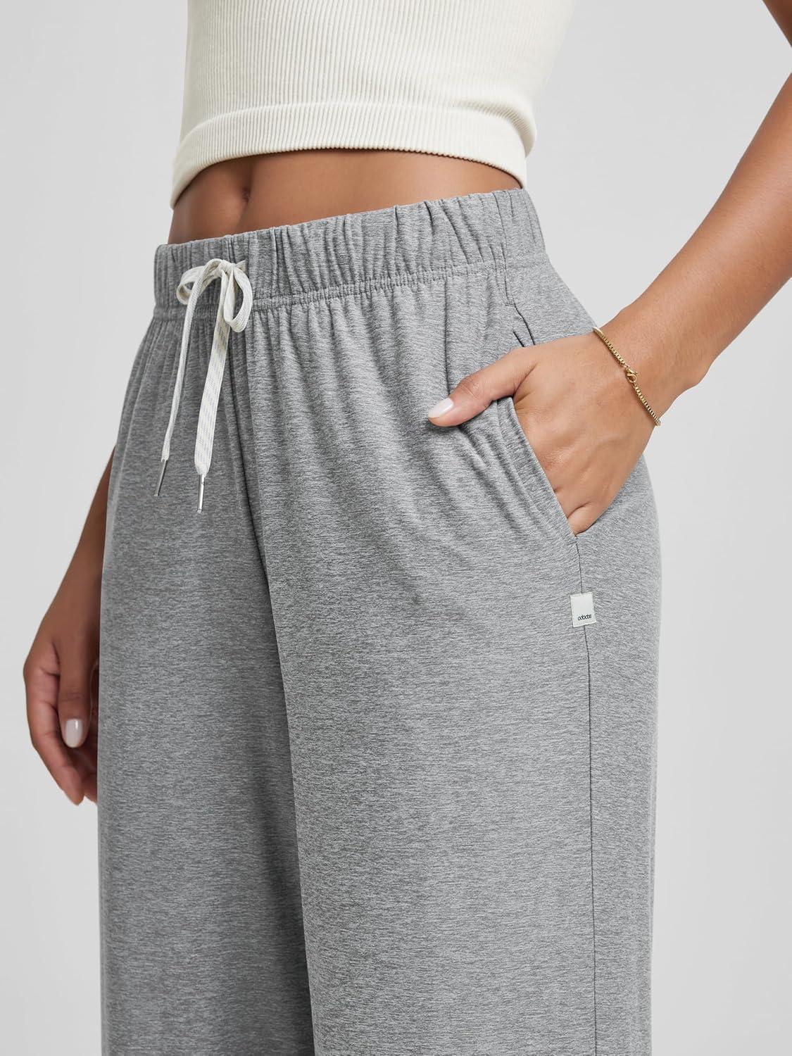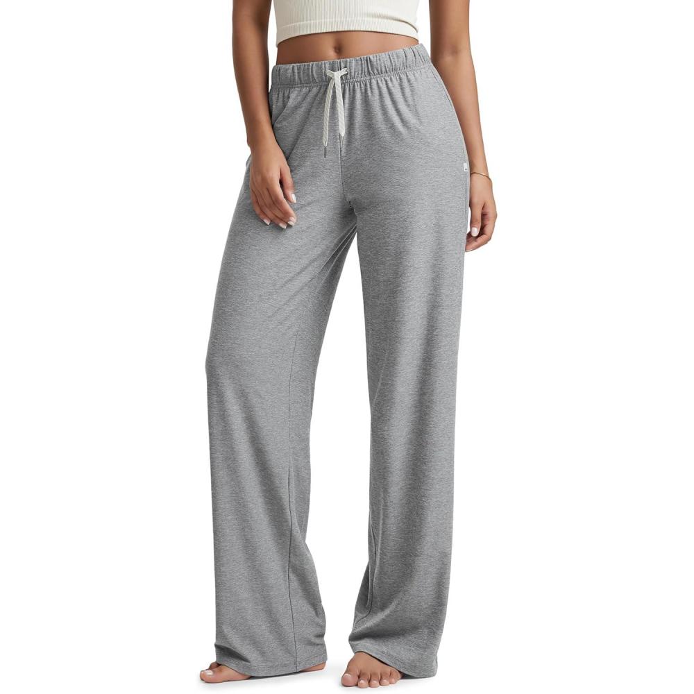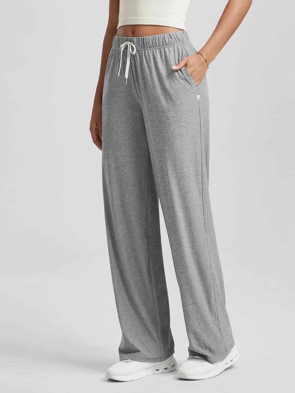 ODODOS Women’s Straight Leg Pants Ultra Soft Stratum Tech Relaxed Casual Pajama Lounge Pants with Pockets-29/31″ Inseam(Grey Heather)