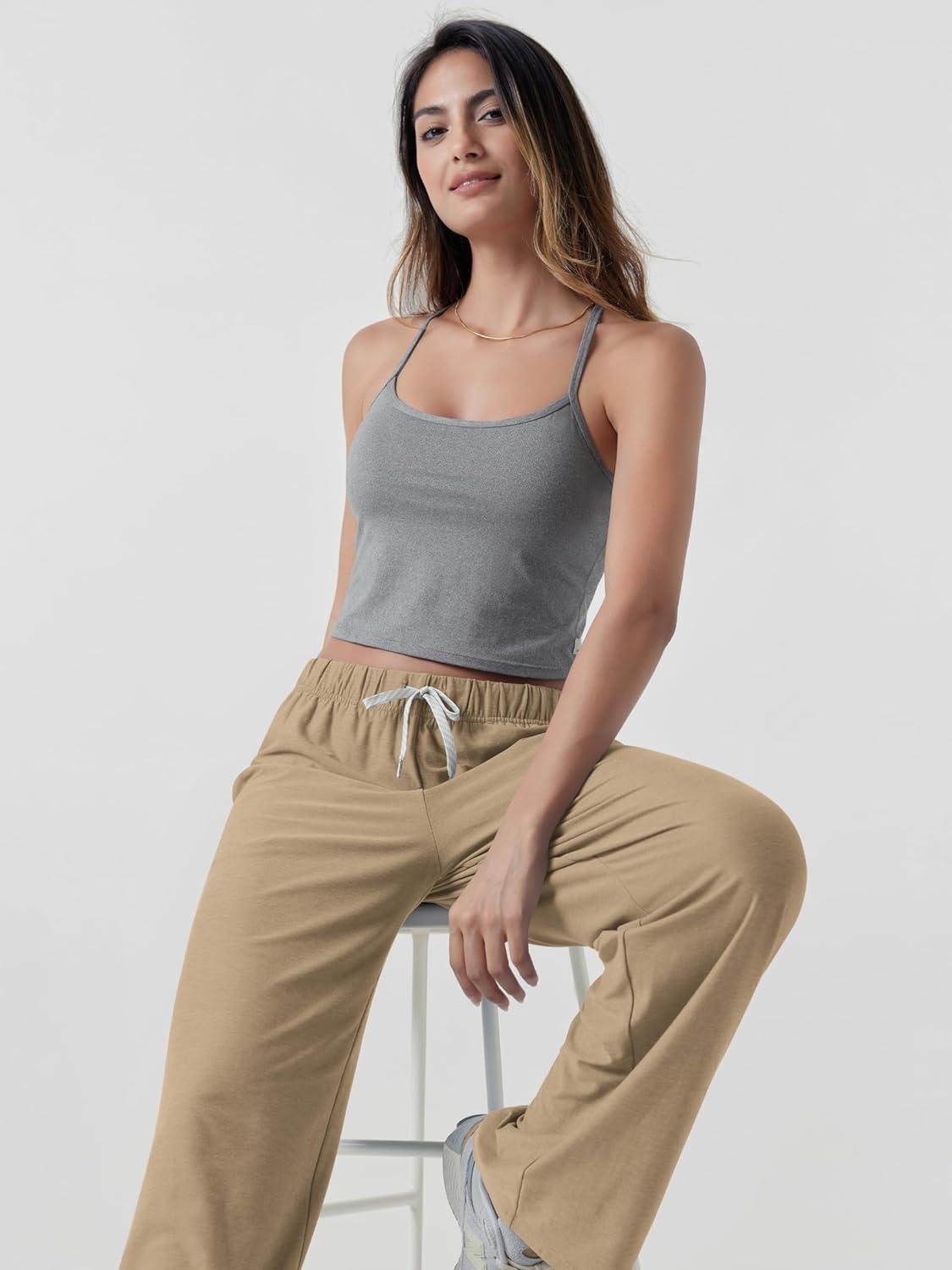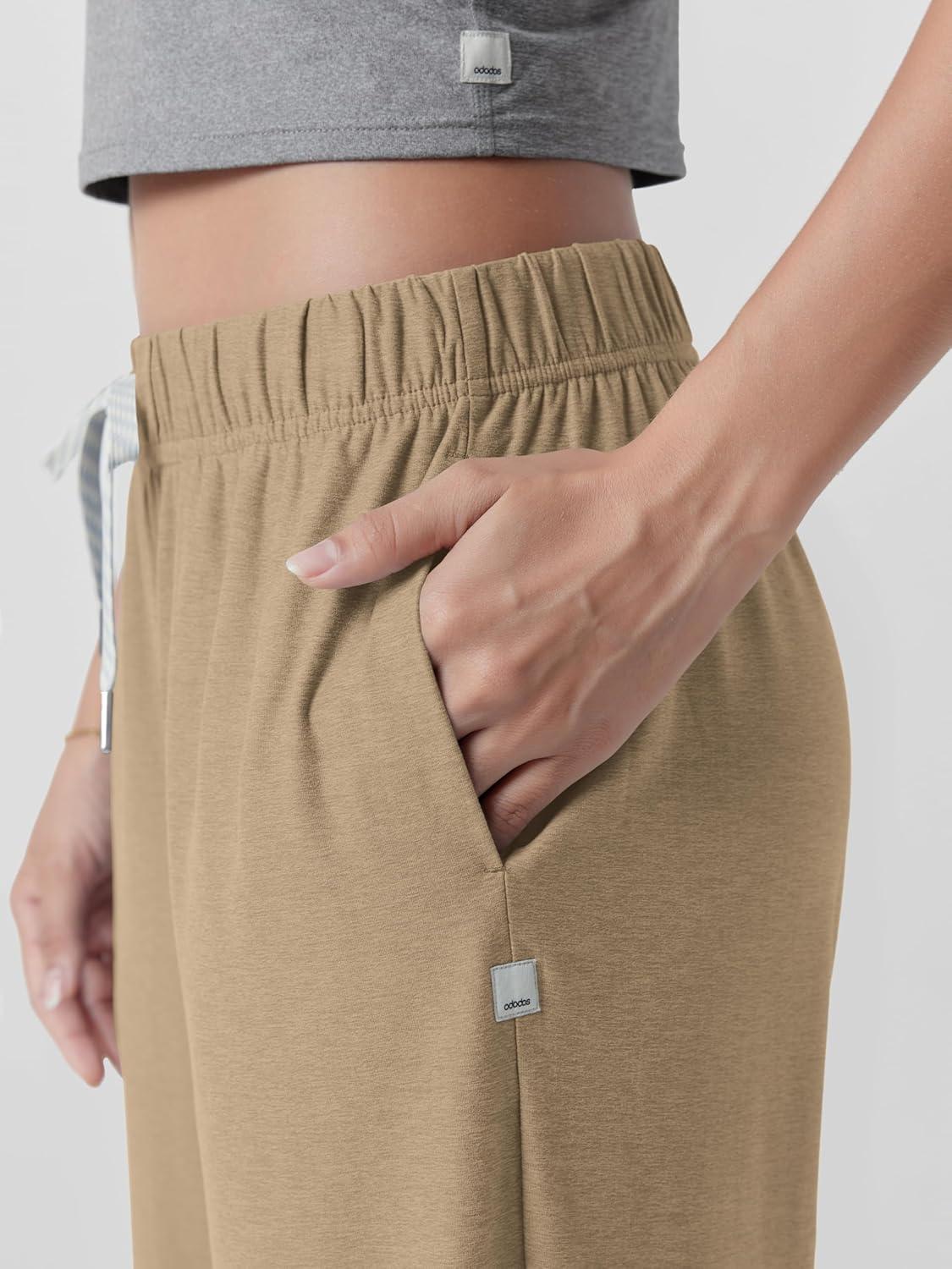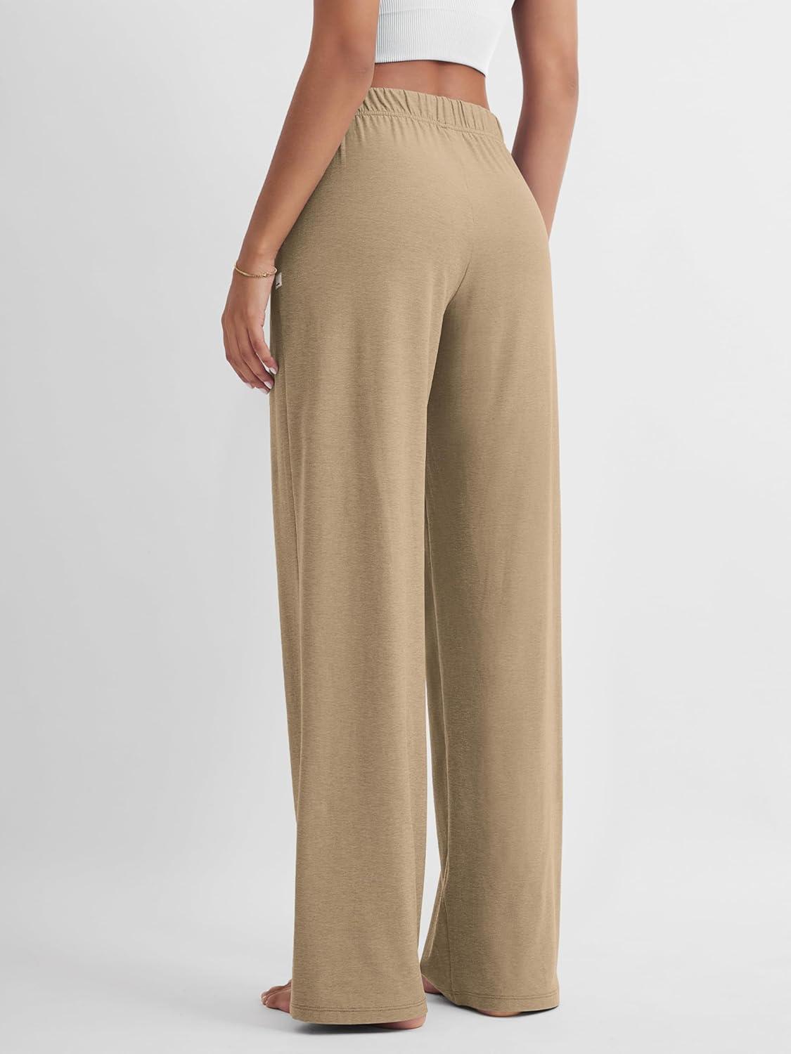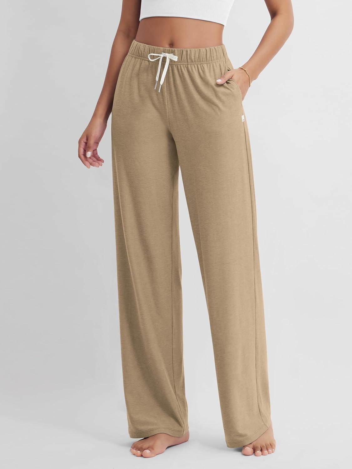 ODODOS Women’s Straight Leg Pants Ultra Soft Stratum Tech Relaxed Casual Pajama Lounge Pants with Pockets-29/31″ Inseam(Khaki Heather)