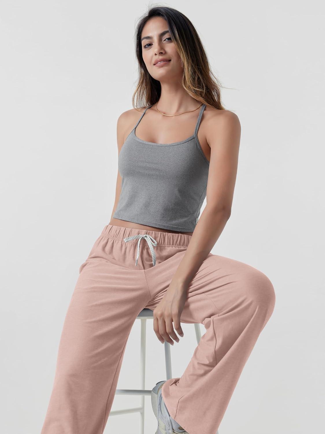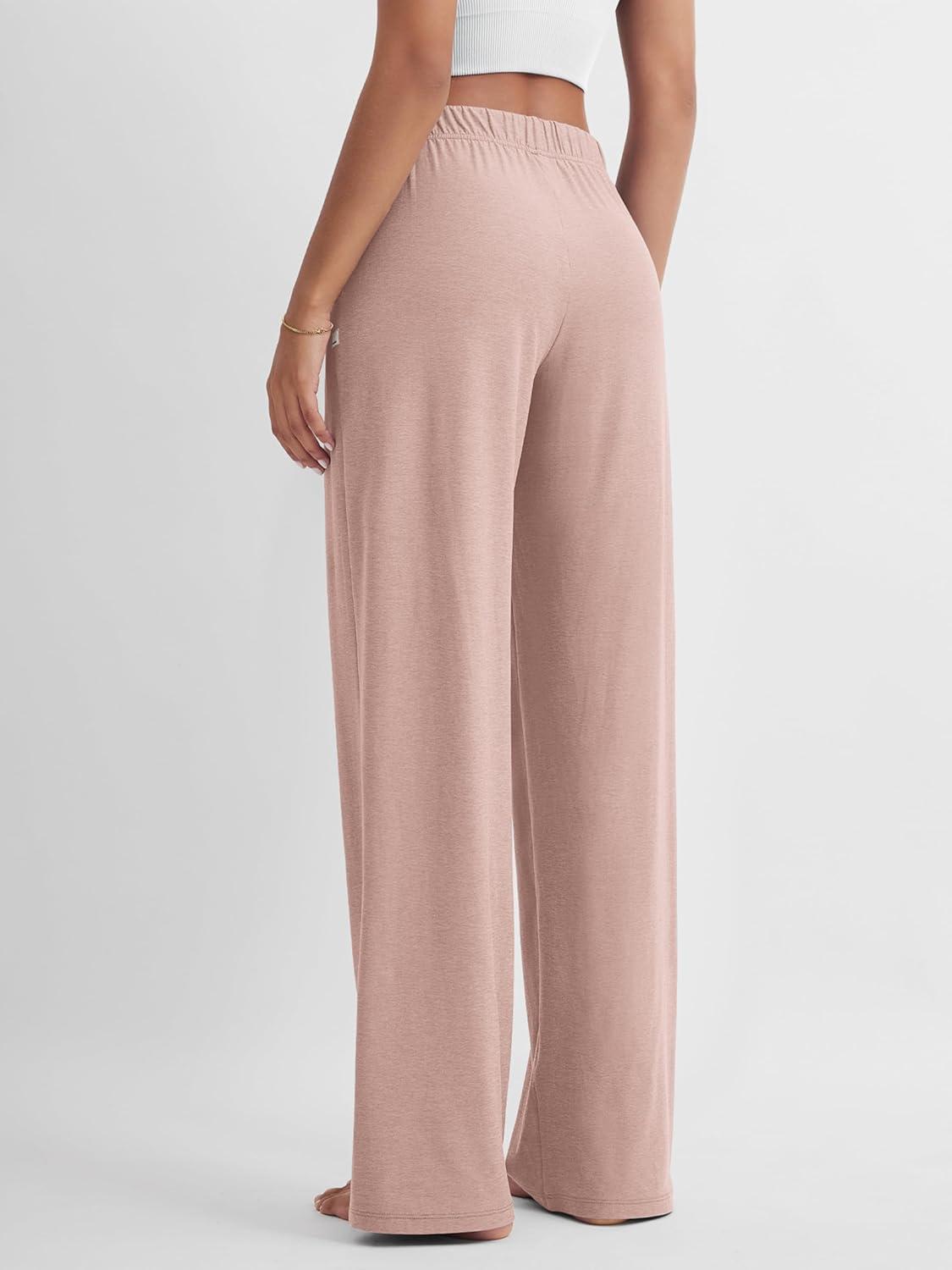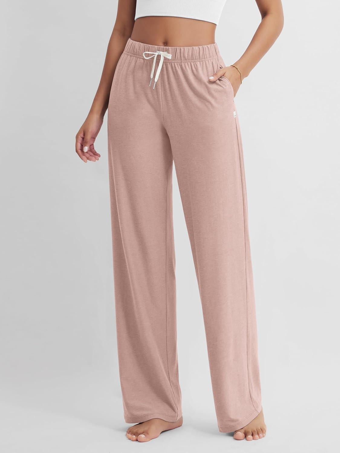 ODODOS Women’s Straight Leg Pants Ultra Soft Stratum Tech Relaxed Casual Pajama Lounge Pants with Pockets-29/31″ Inseam(Rose Pink Heather)