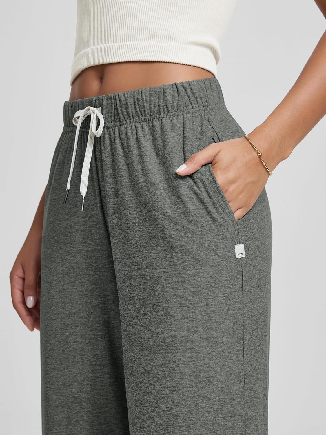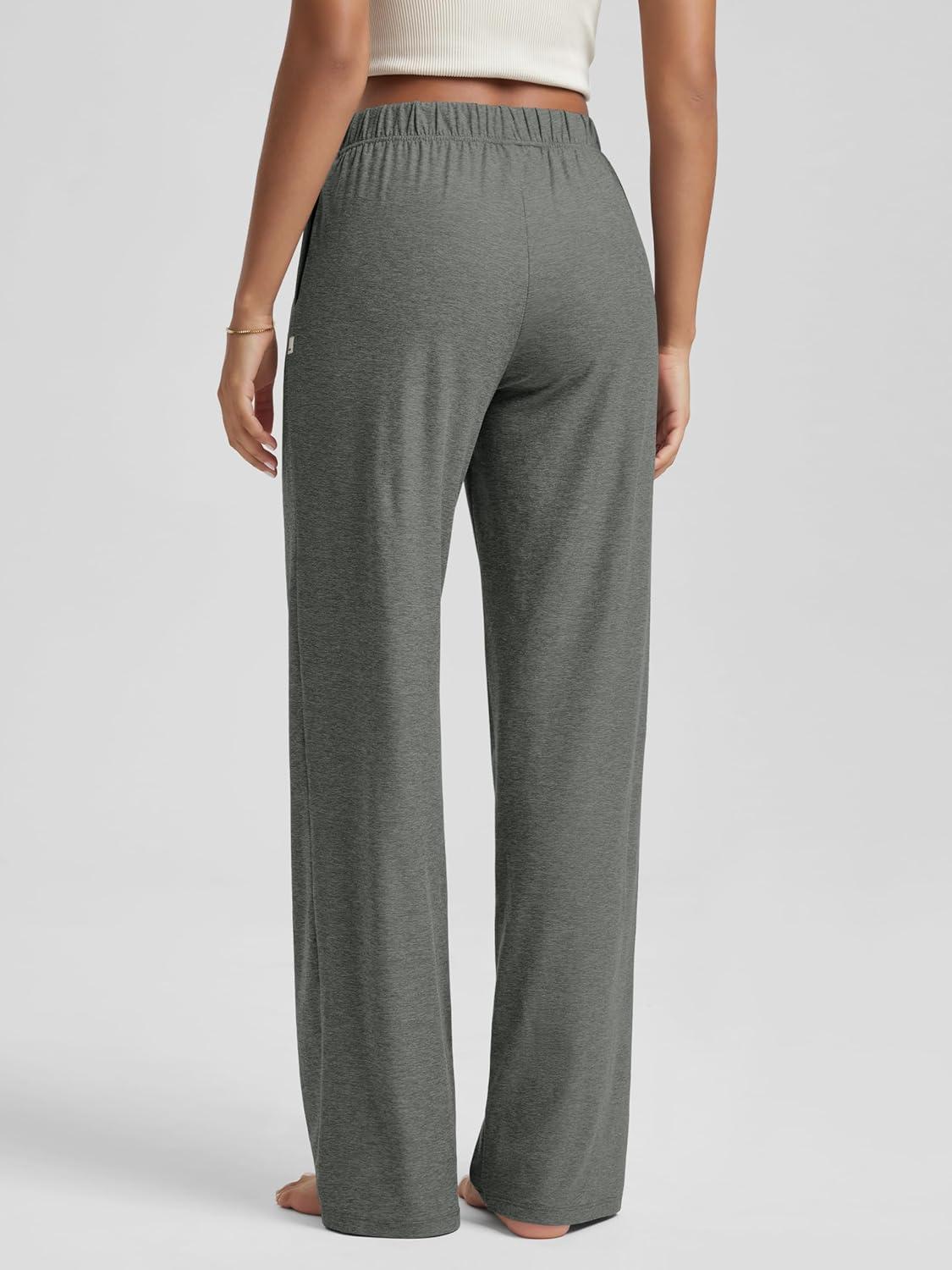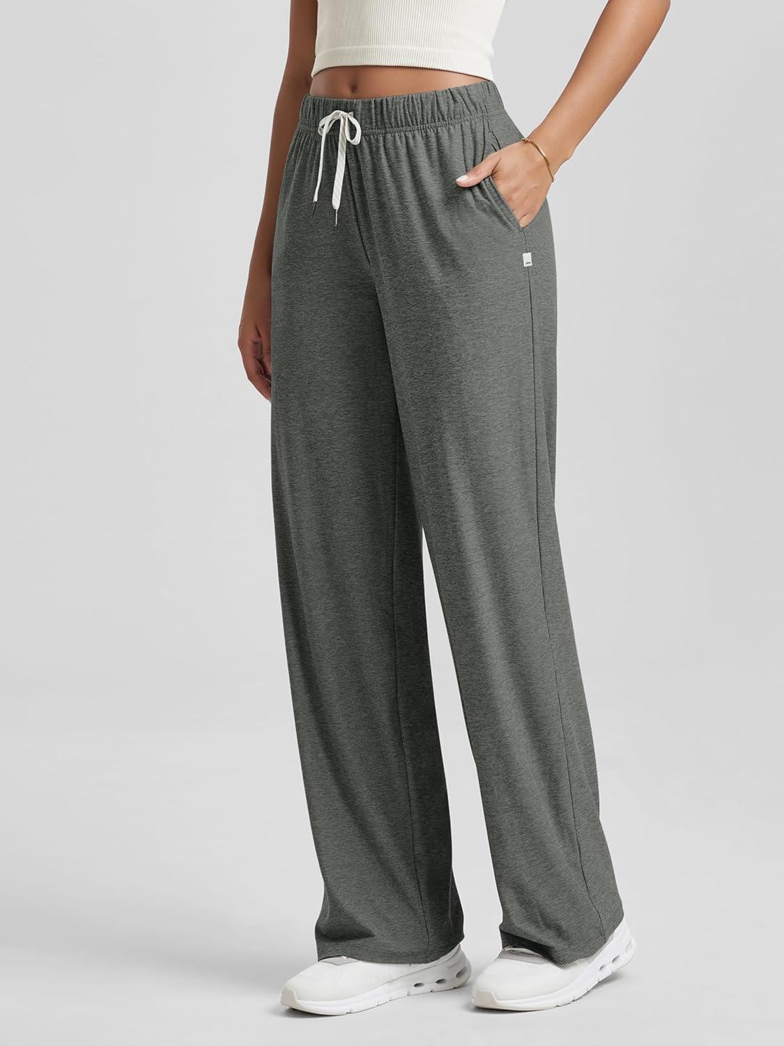 ODODOS Women’s Straight Leg Pants Ultra Soft Stratum Tech Relaxed Casual Pajama Lounge Pants with Pockets-29/31″ Inseam(Smoke Heather)
