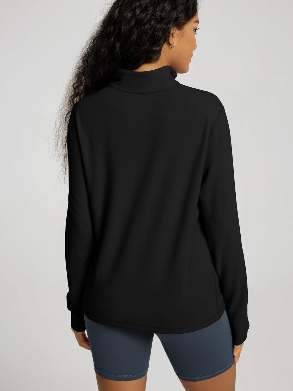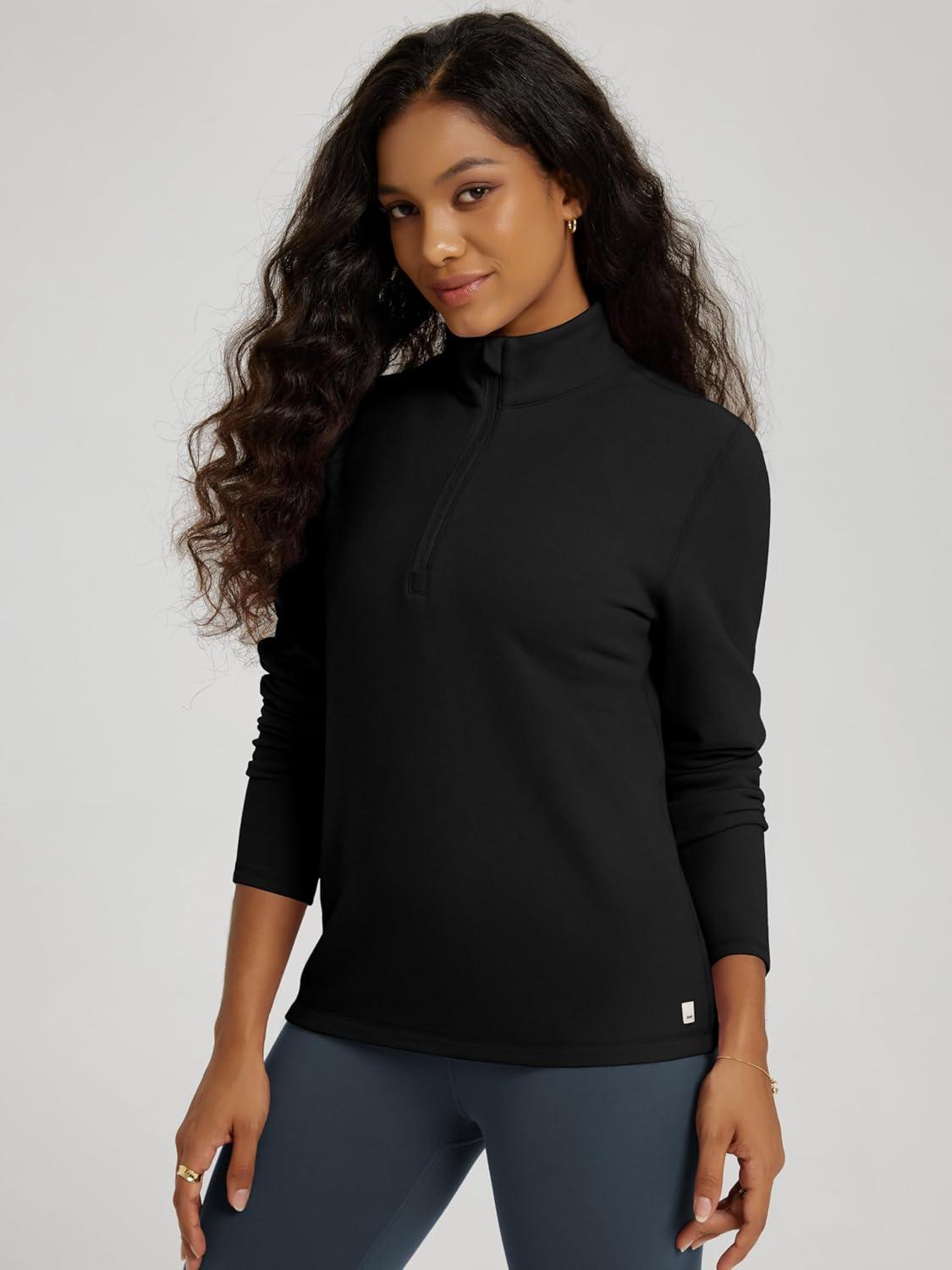 ODODOS Women's Stretch Fleece Half-Zip Sweatshirts – Ultra Soft Cozy Warm Long Sleeve Mock Neck Pullover Tops(Black)