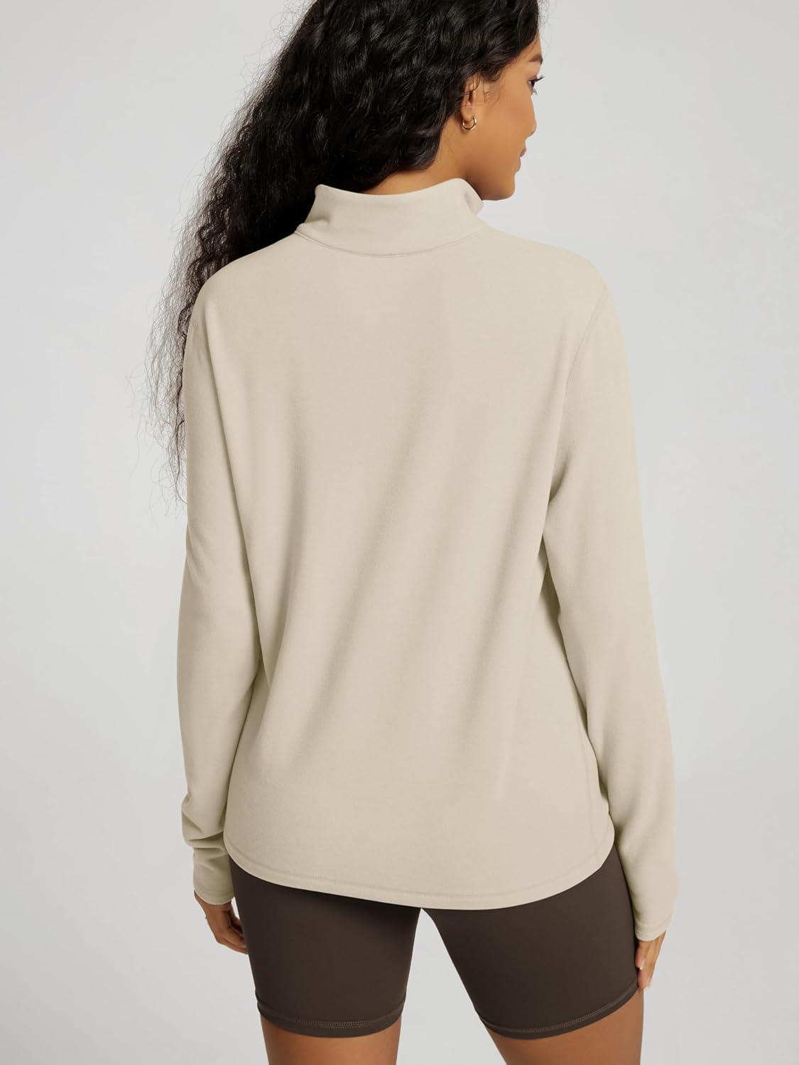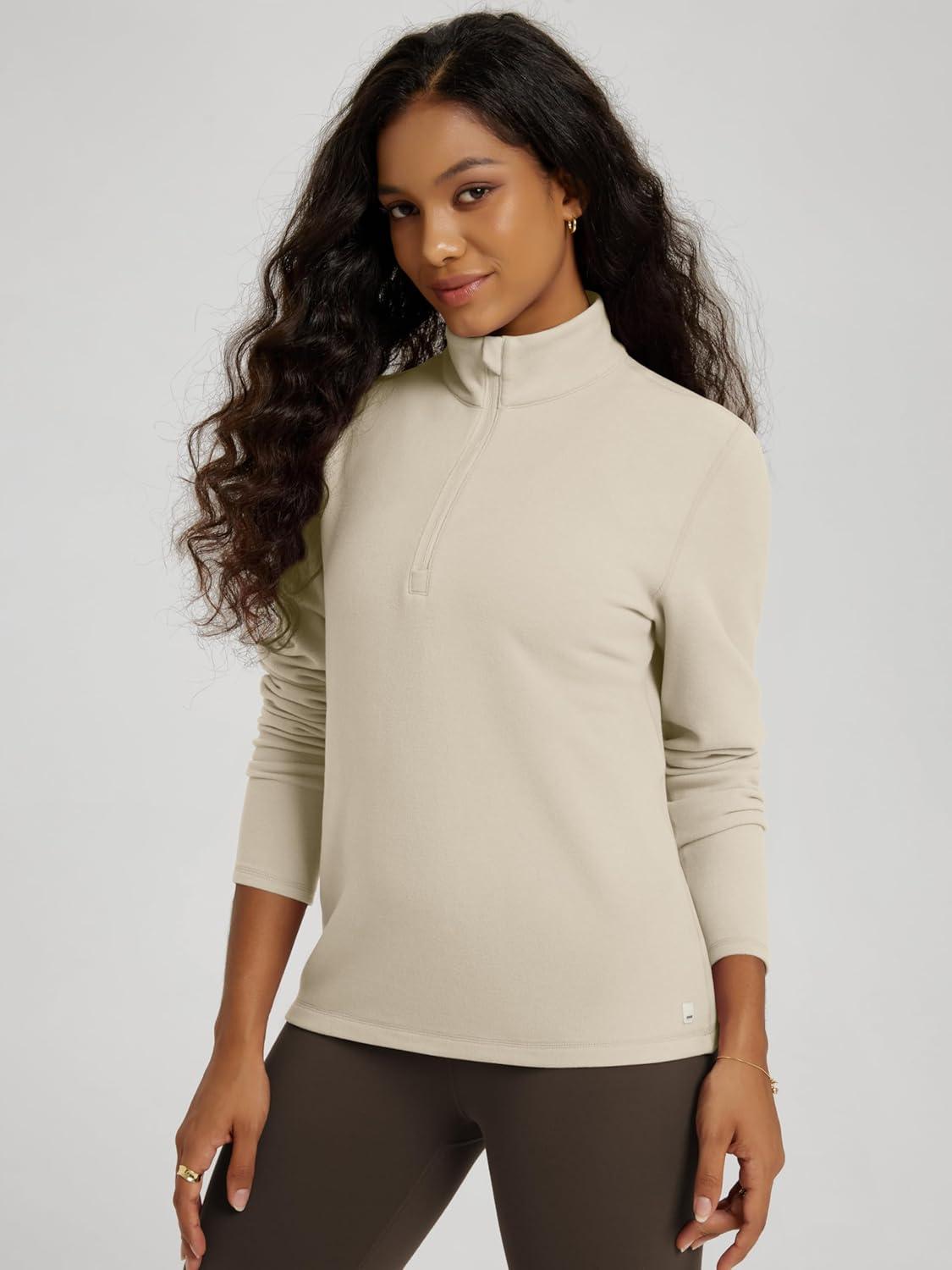 ODODOS Women’s Stretch Fleece Half-Zip Sweatshirts – Ultra Soft Cozy Warm Long Sleeve Mock Neck Pullover Tops(Oatmeal)