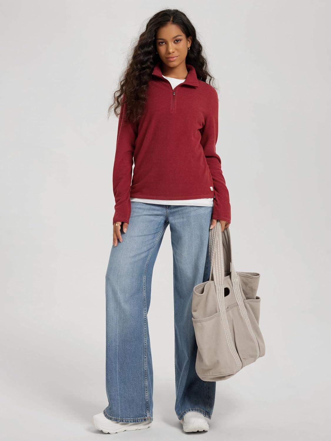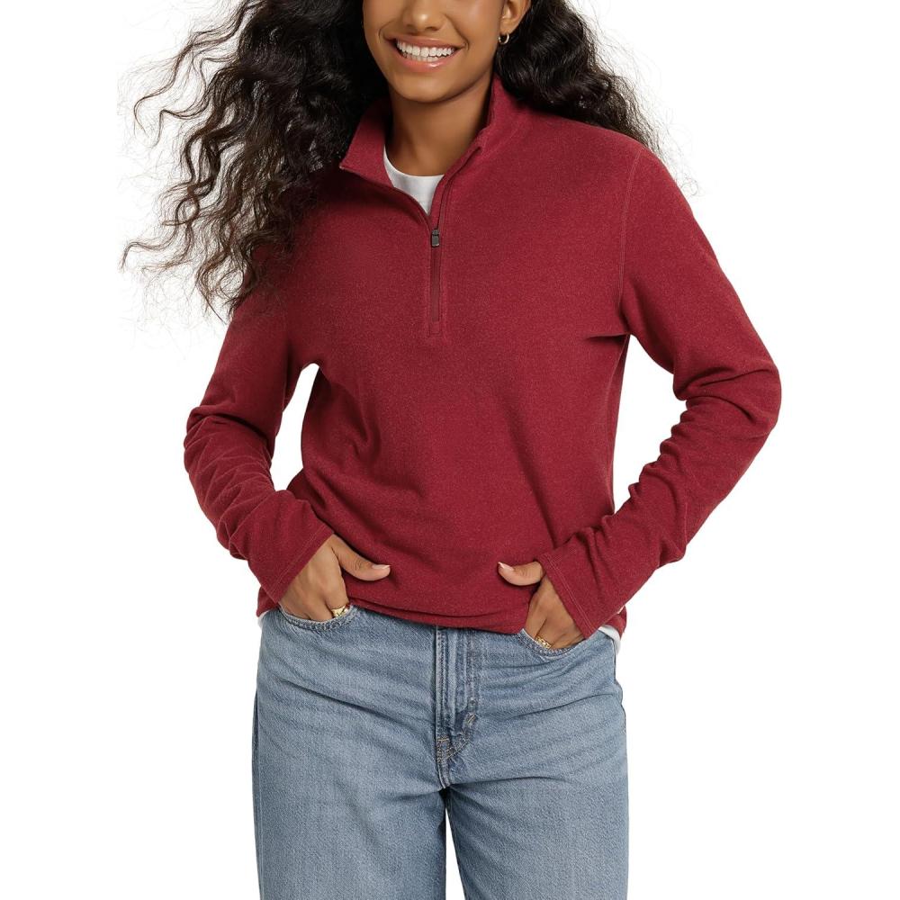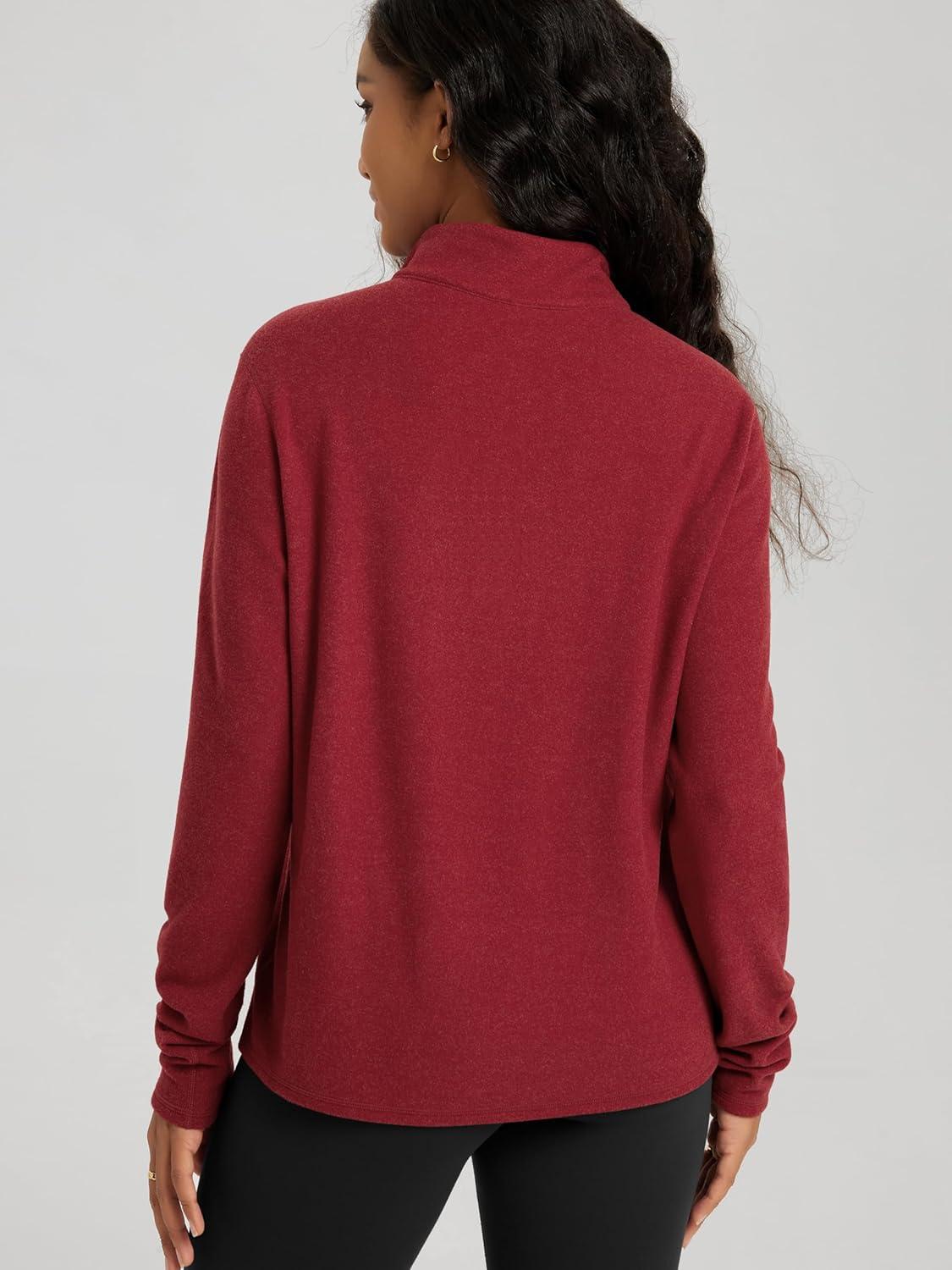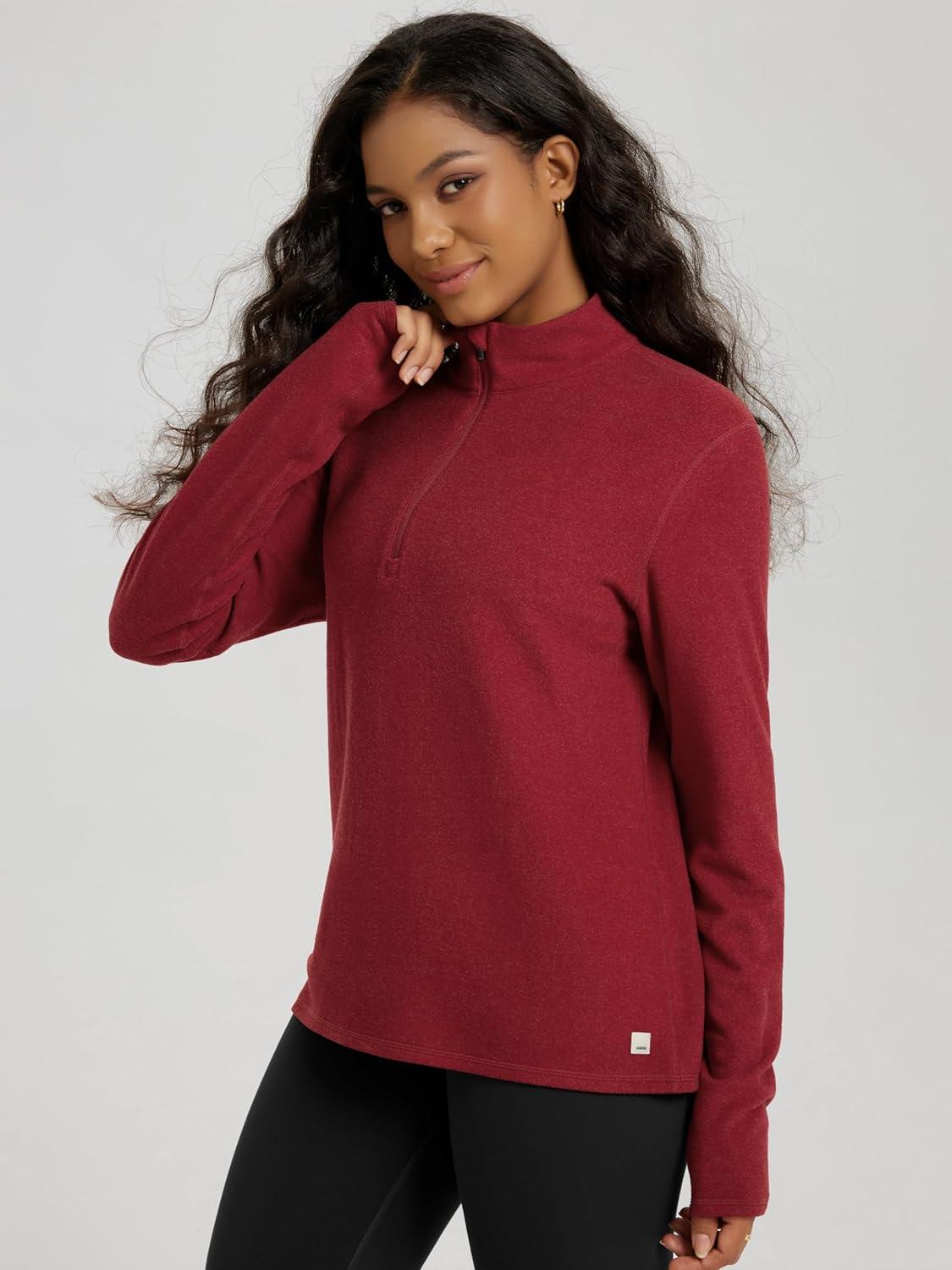 ODODOS Women’s Stretch Fleece Half-Zip Sweatshirts – Ultra Soft Cozy Warm Long Sleeve Mock Neck Pullover Tops(Salsa Heather)