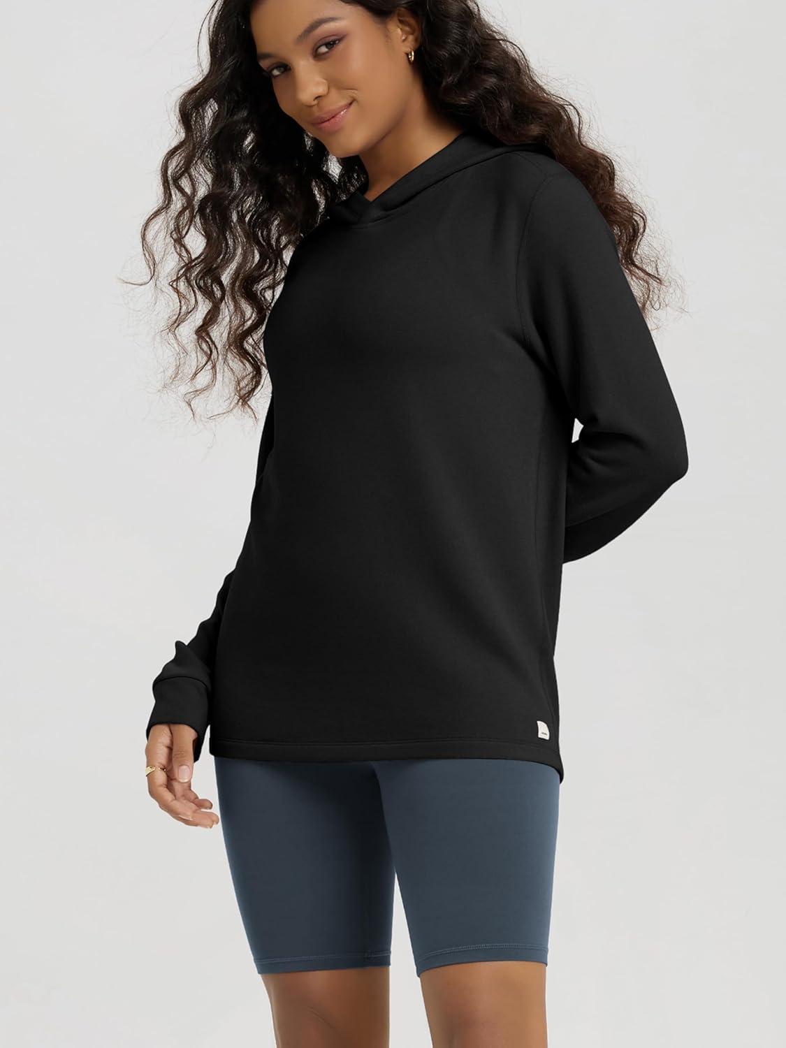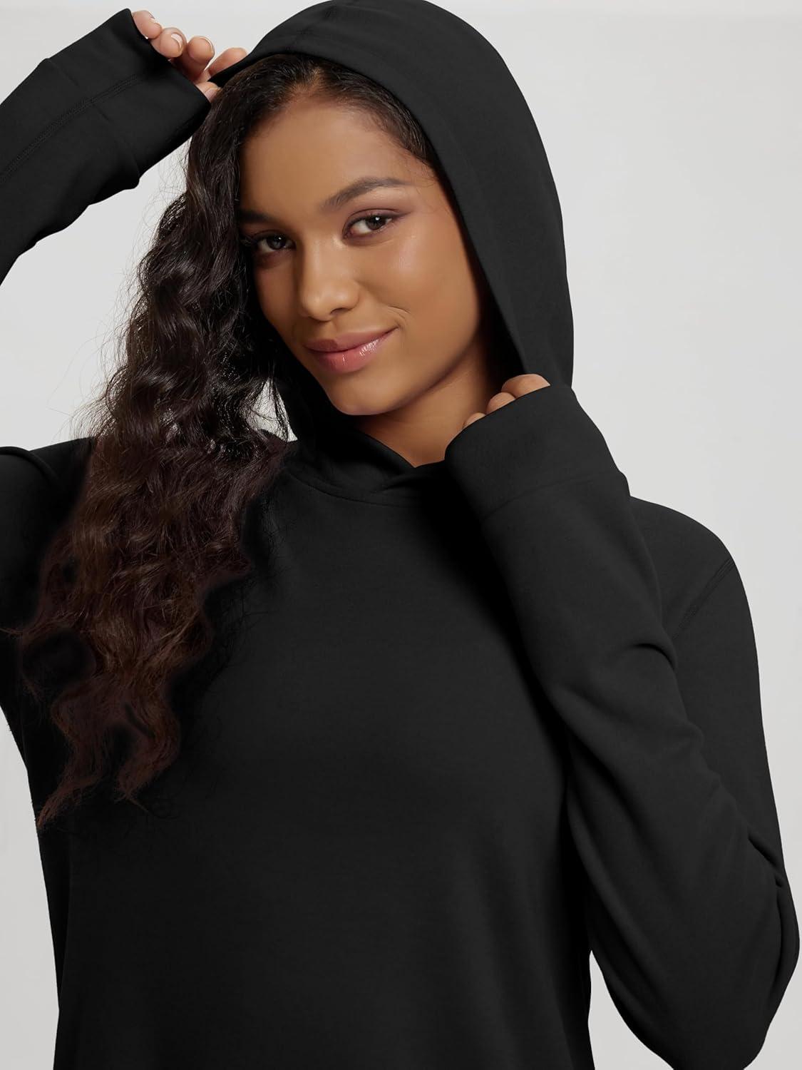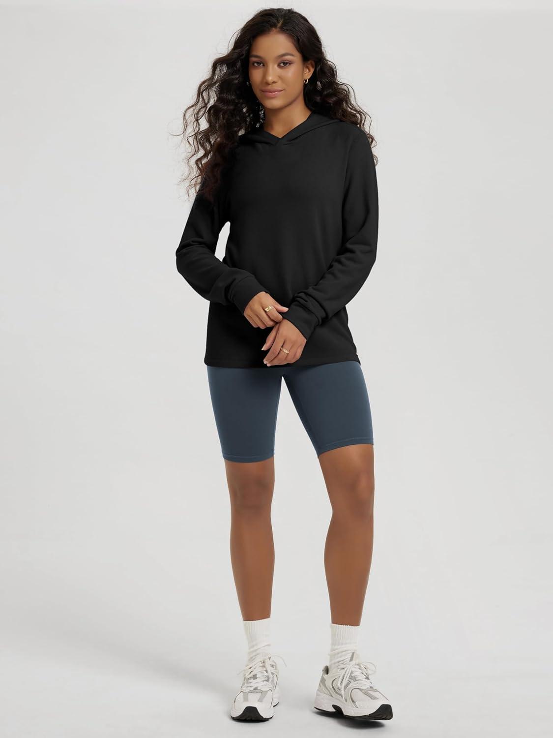 The relaxed silhouette offers laid-back comfort with subtle details like smooth seams and a discreet side logo. With its hip-covering long length, this cozy hoodie pairs perfectly with leggings, joggers, or jeans—ideal for lounging, running errands, or layering up for everyday warmth.