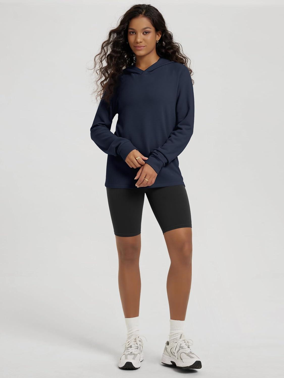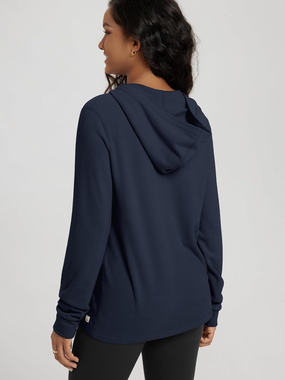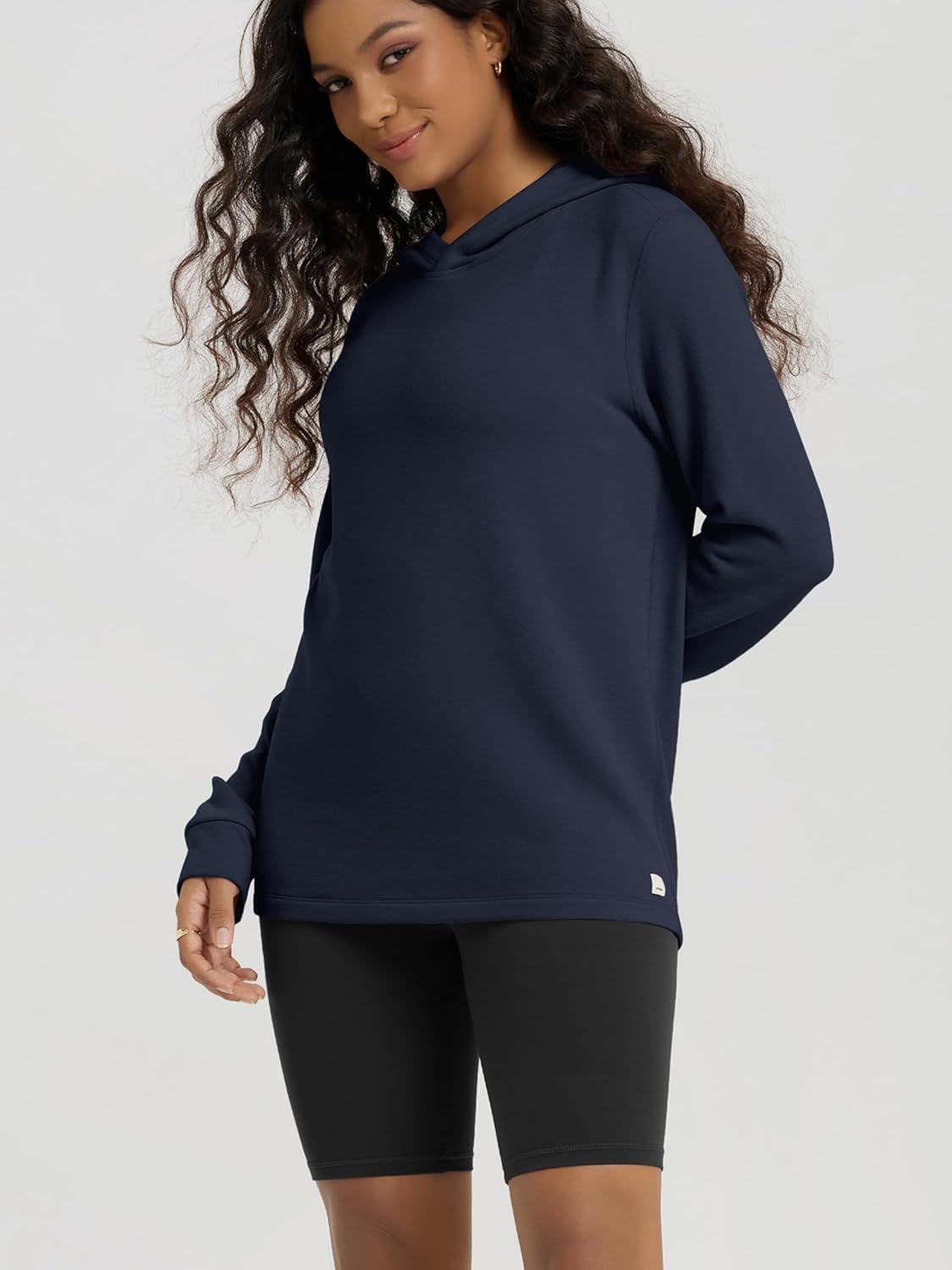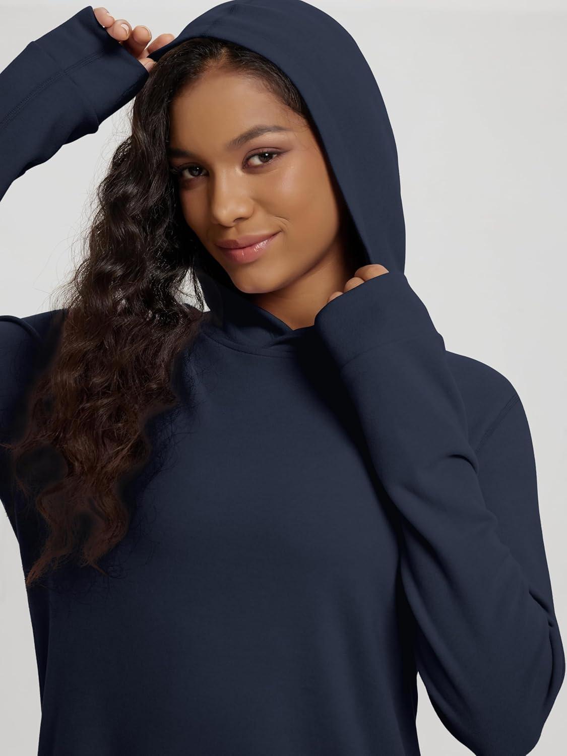 ODODOS Women’s Stretch Fleece Hoodies– Ultra-Soft Cozy Warm Essential Pullover Long Sleeve Top Hooded Sweatshirts(Navy)