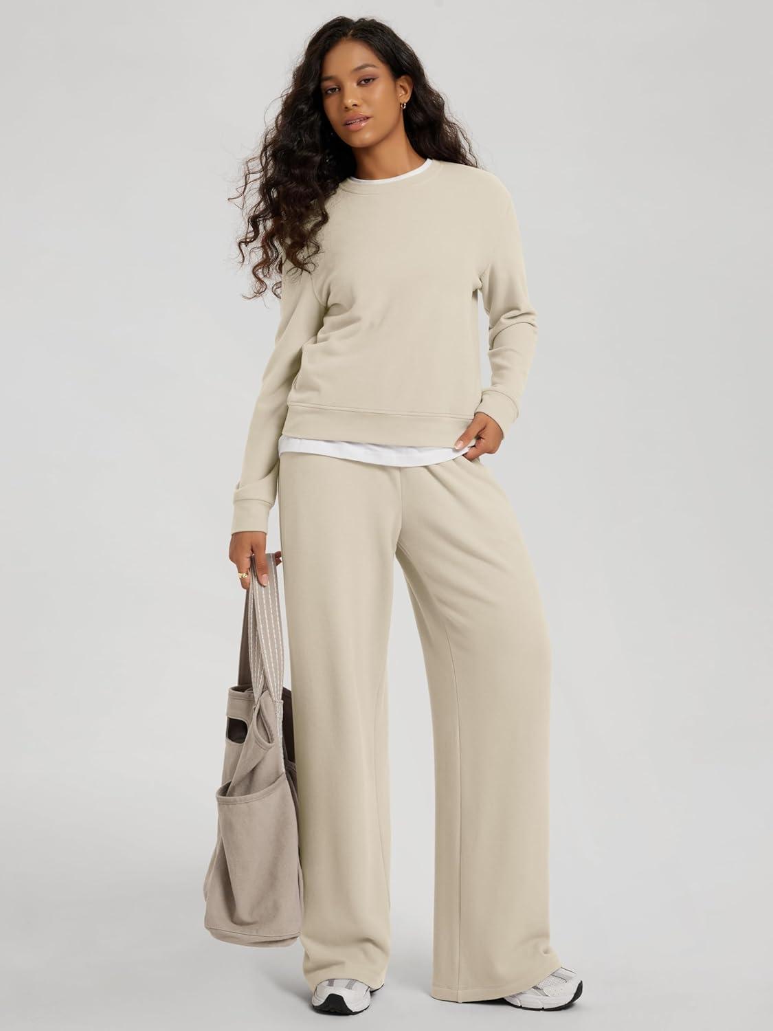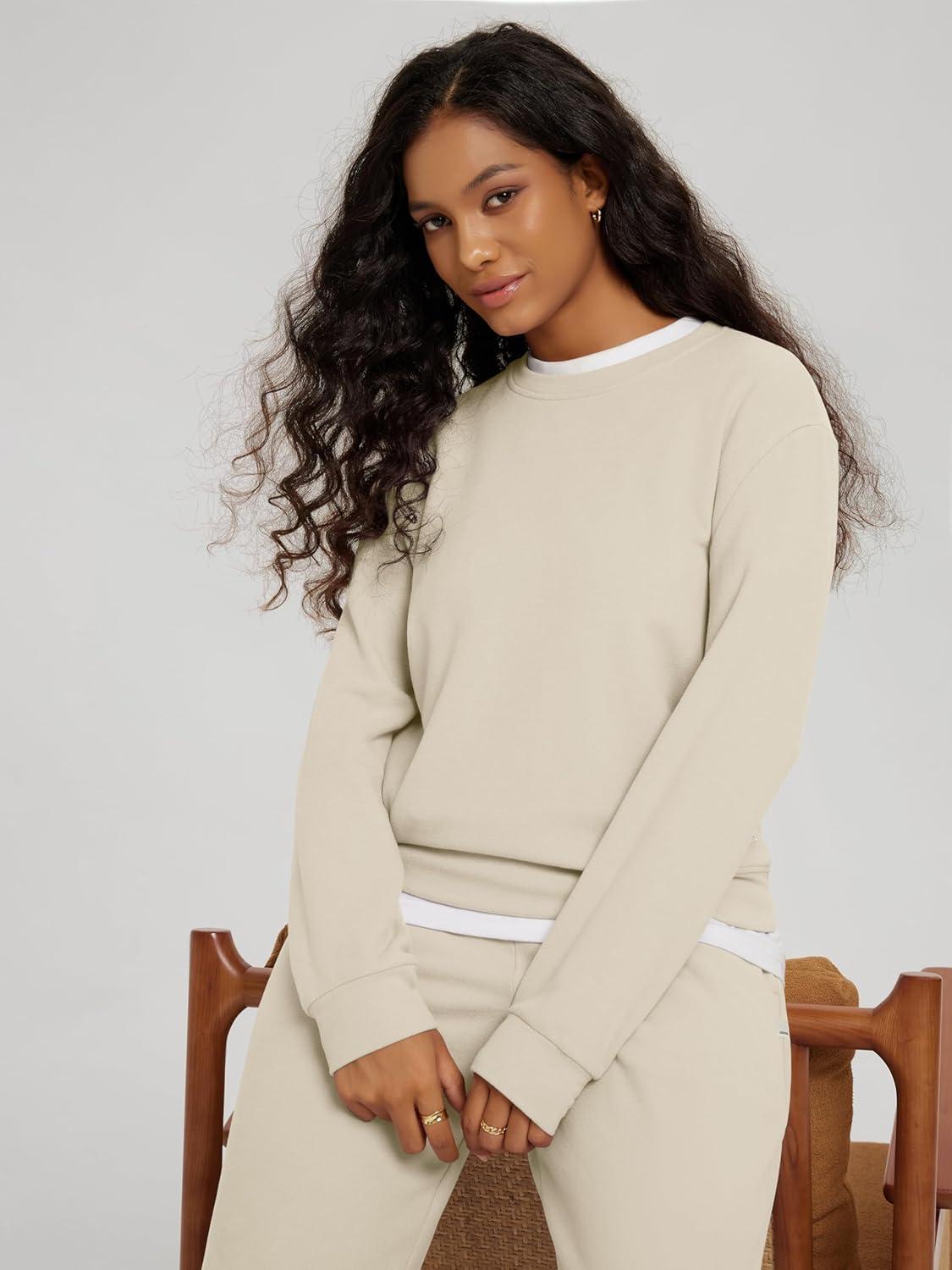ODODOS Women’s Stretch Fleece Long Sleeve Sweatshirts – Ultra-Soft Cozy Warm Crewneck Pullover Tops(Oatmeal)
