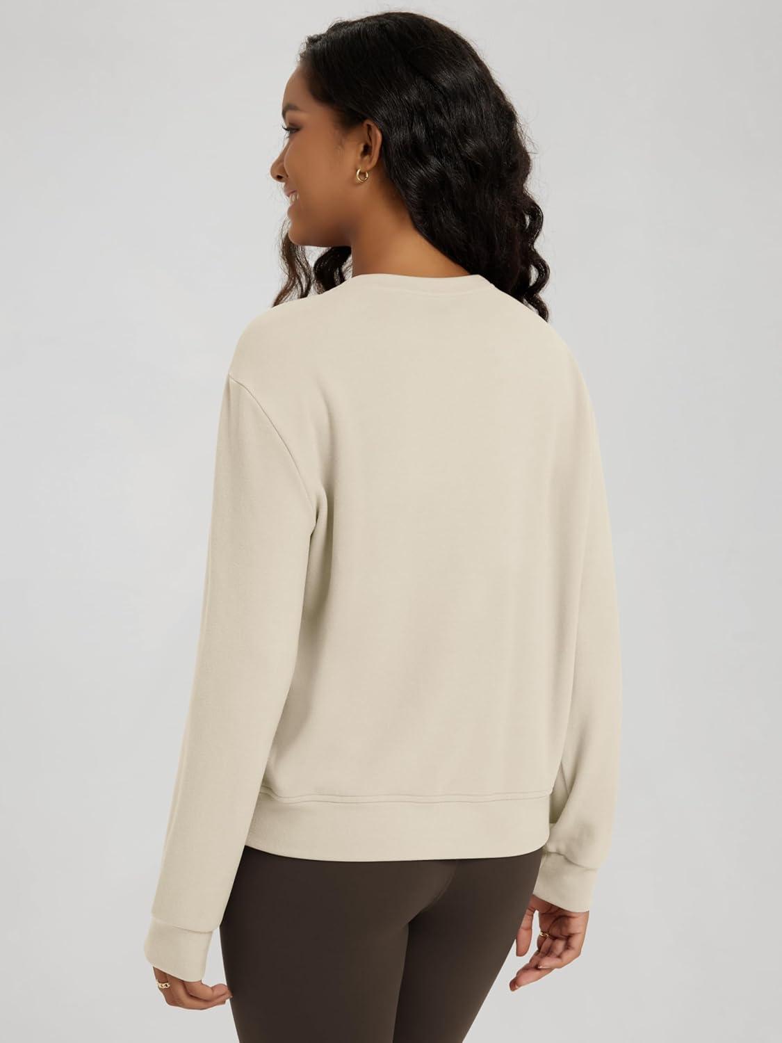 ODODOS Women's Stretch Fleece Long Sleeve Sweatshirts – Ultra-Soft Cozy Warm Crewneck Pullover Tops(Oatmeal)