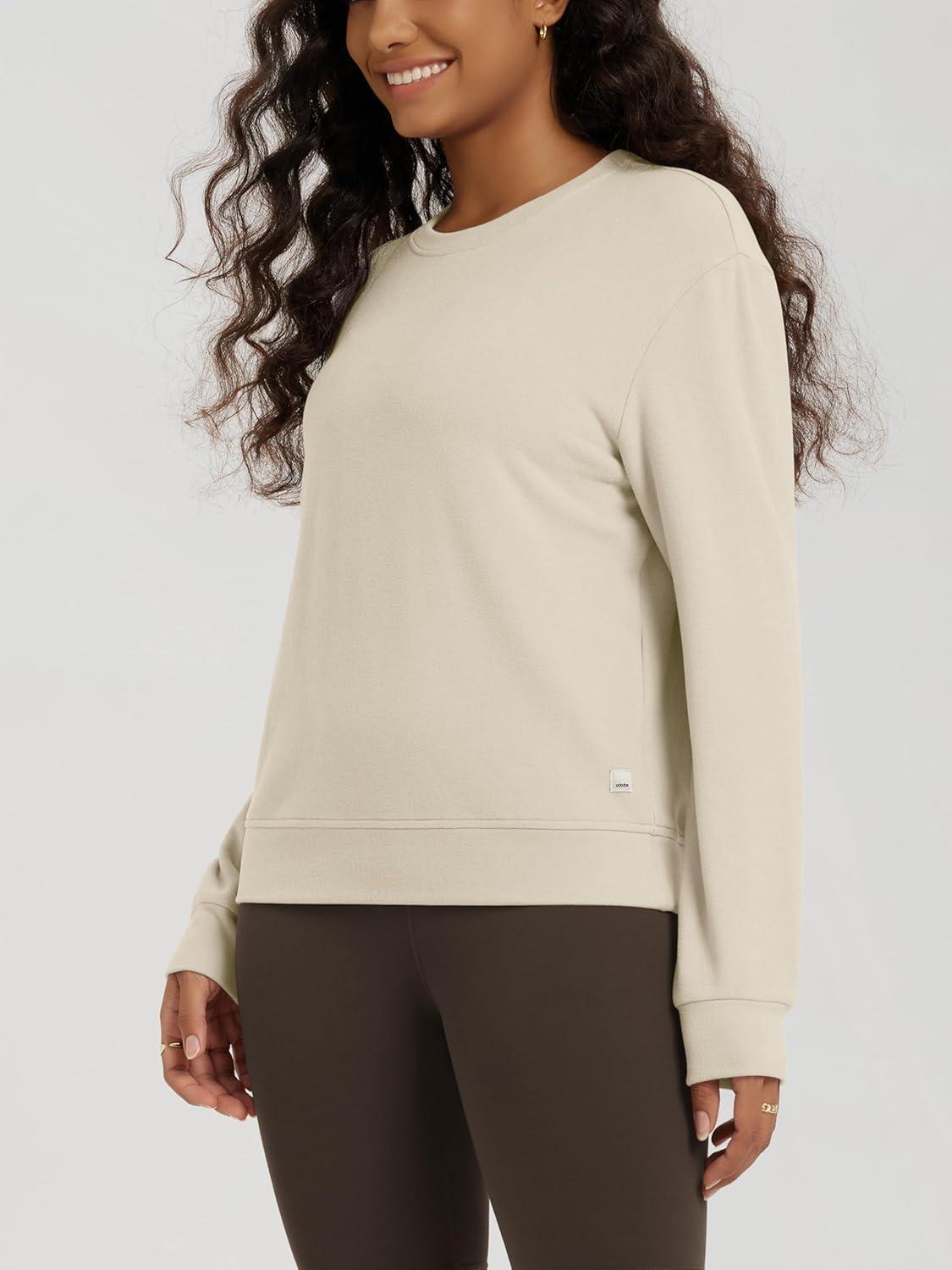 imageODODOS Womens Stretch Fleece Long Sleeve Sweatshirts  UltraSoft Cozy Warm Crewneck Pullover TopsOatmeal