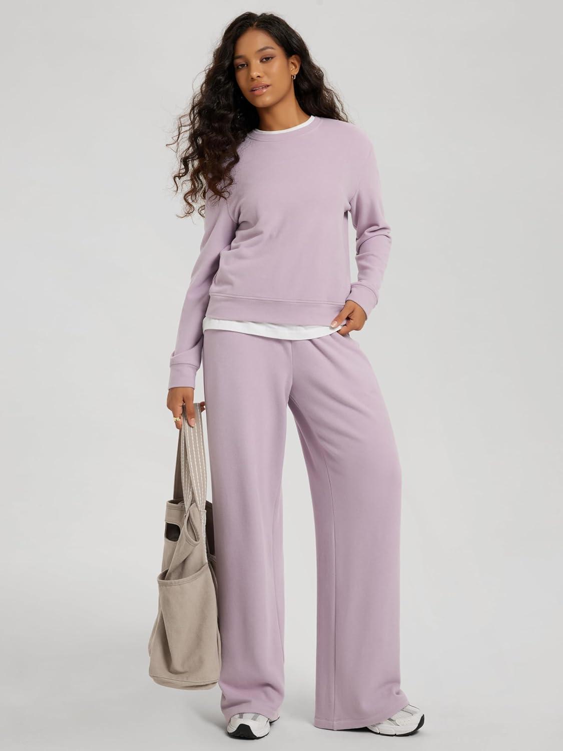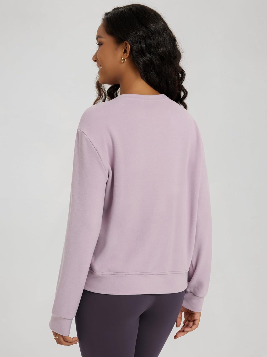 ODODOS Women’s Stretch Fleece Long Sleeve Sweatshirts – Ultra-Soft Cozy Warm Crewneck Pullover Tops(Orchid Tint)